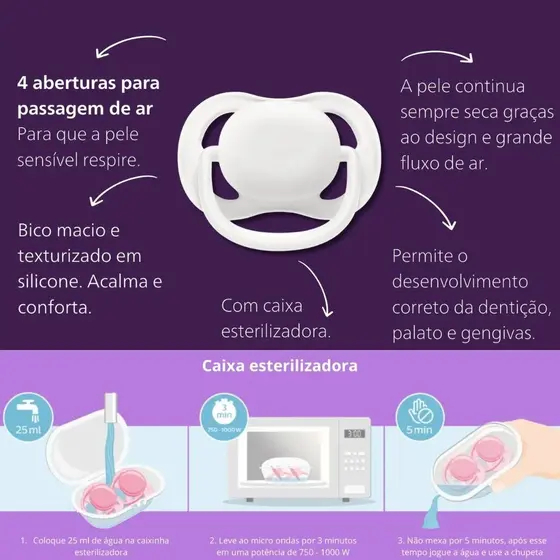Chupeta Ultra Air Coruja Bege Brilha no Escuro 0-6m - Avent Silicone
