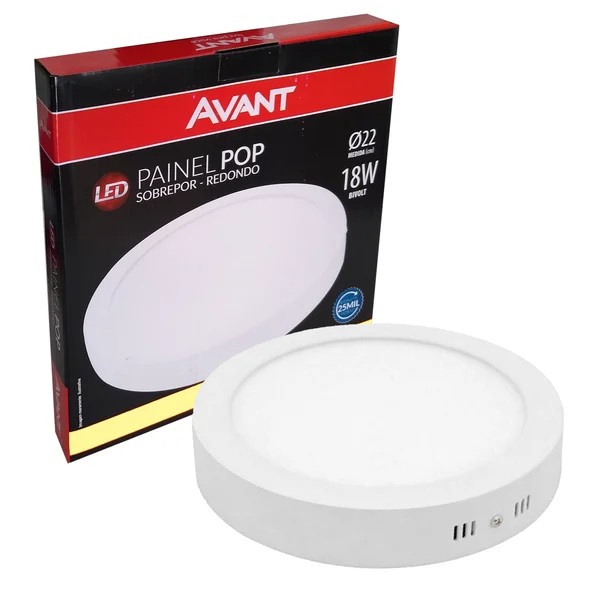 Painel Plafon Led Luminária Sobrepor Redondo 6w 12w 18w 24w 6500K 4000K 3000K Avant