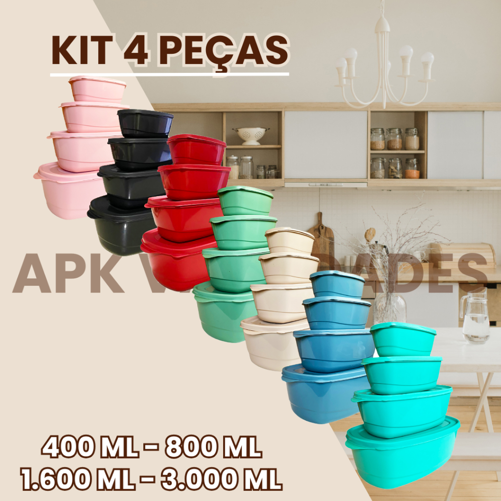 Kit Pote Plástico Para Cozinha 4 peças hermetico