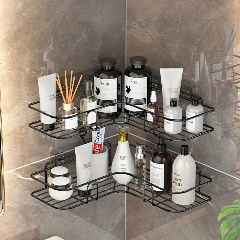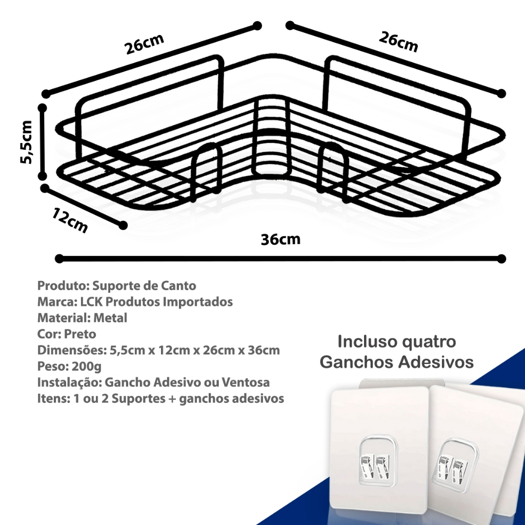 Suporte de Canto Porta Shampoo Sabonete Prateleira Para Banheiro Cantoneira Organizador com Adesivo