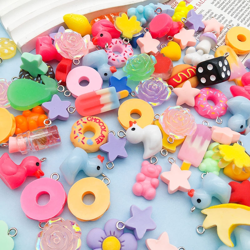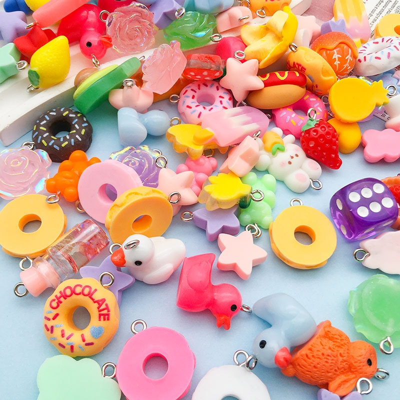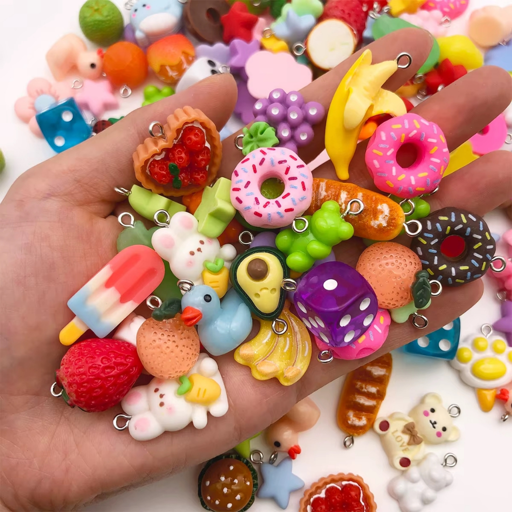 Kit Pingentes Resina Divertidos 50 Peças + 50 Anzol Para Brinco TOTAL 100 Peças
