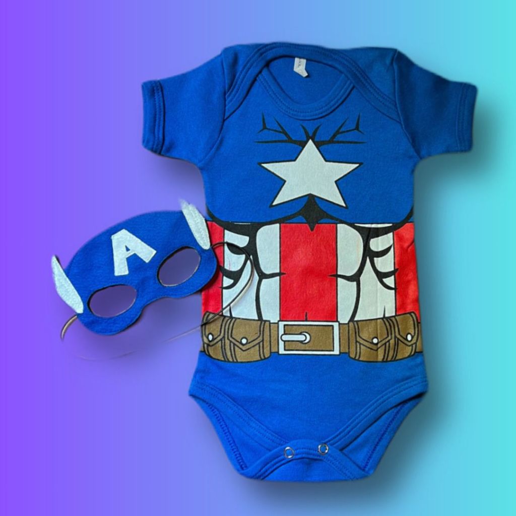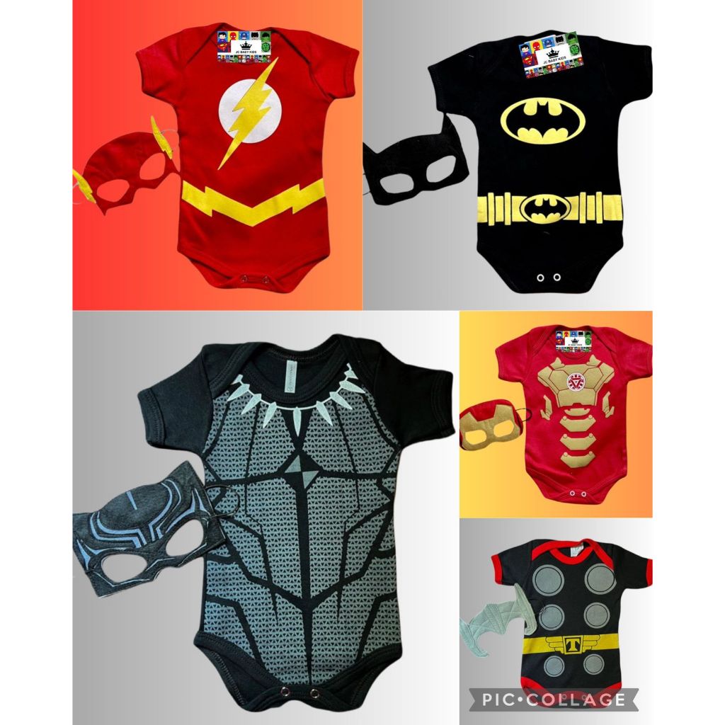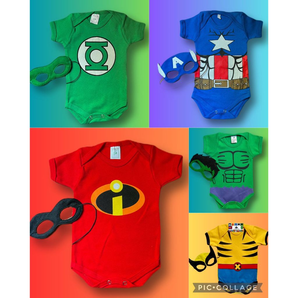 Body temático para mesversario super herois + capitão américa hulk thor incríveis pantera negra homem de ferro batman