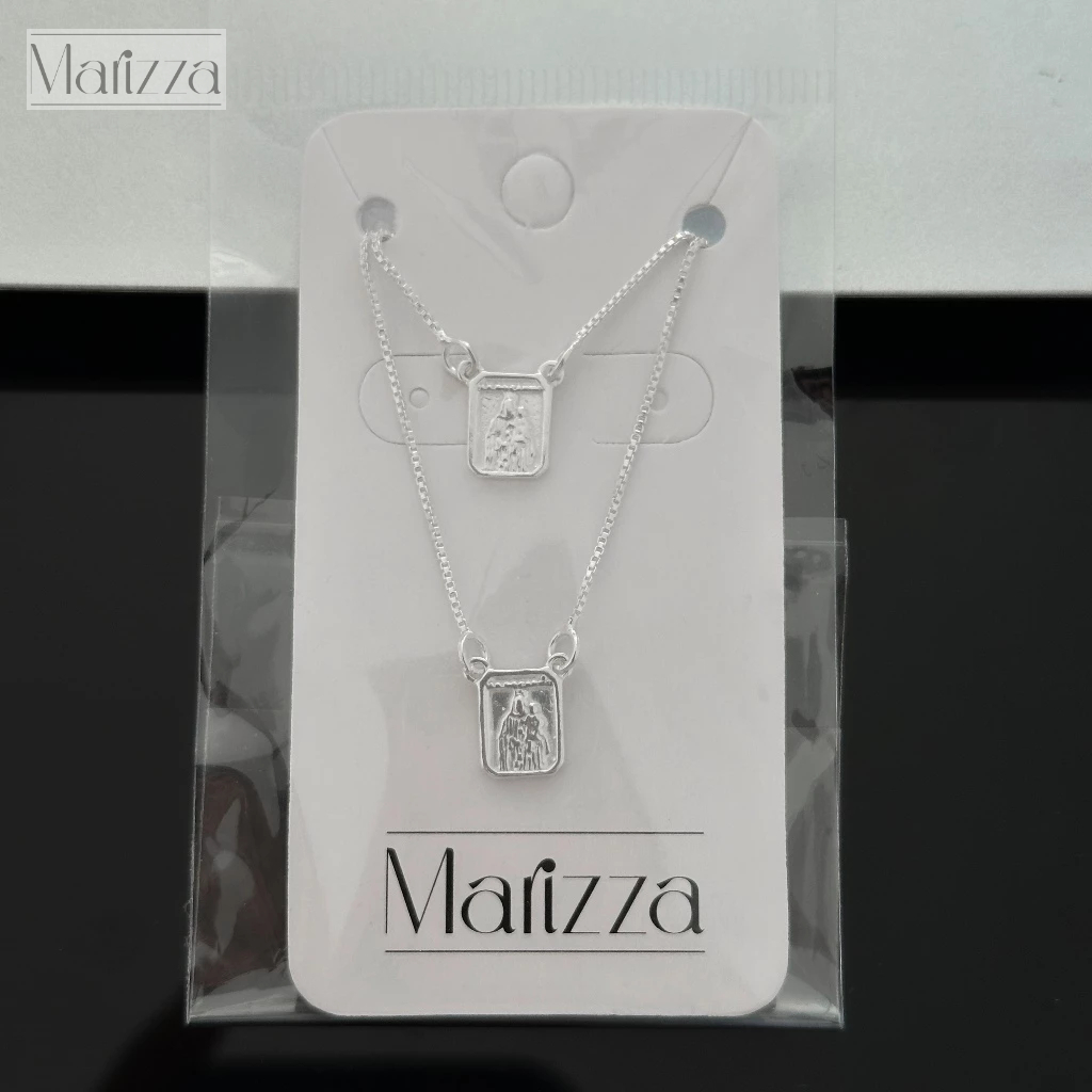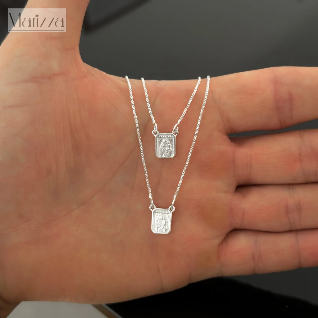 Escapulário masculino nossa senhora do carmo sagrado coração de Jesus Prata 925 60cm
