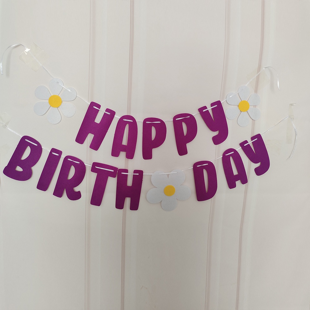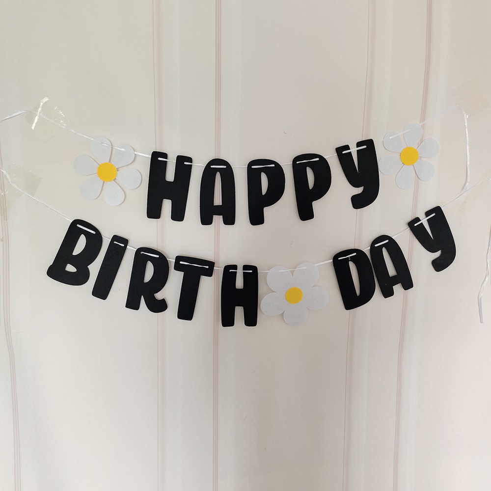 1 Conjunto Margarida Feliz Aniversário Banner Não Tecido Branco Flor Garland Festa De Decoração Kids Baby Shower Hanging Flag Supplies