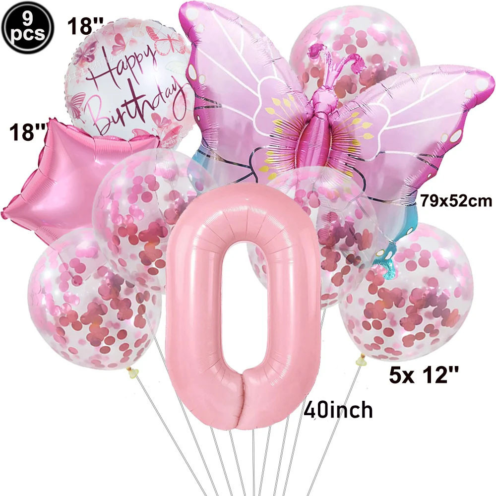Balão De Borboleta Rosa Balloons , 40inch Número Set , Baby Chuveiro Decorações Da Festa De Aniversário De Casamento , 1/9pcs