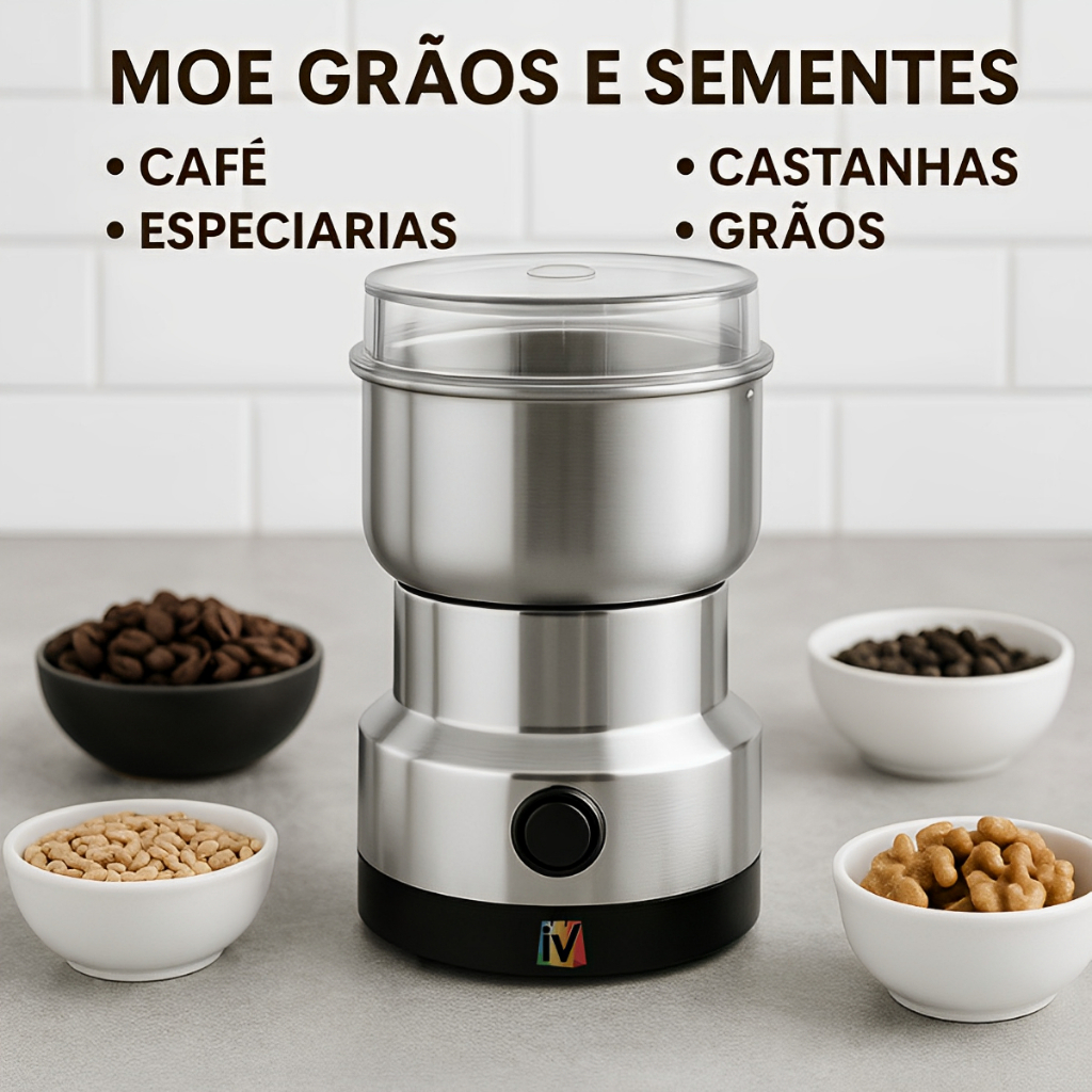 Moedor Café Grãos Triturador Sementes Elétrico Inox Portátil 4 Lâminas 110v