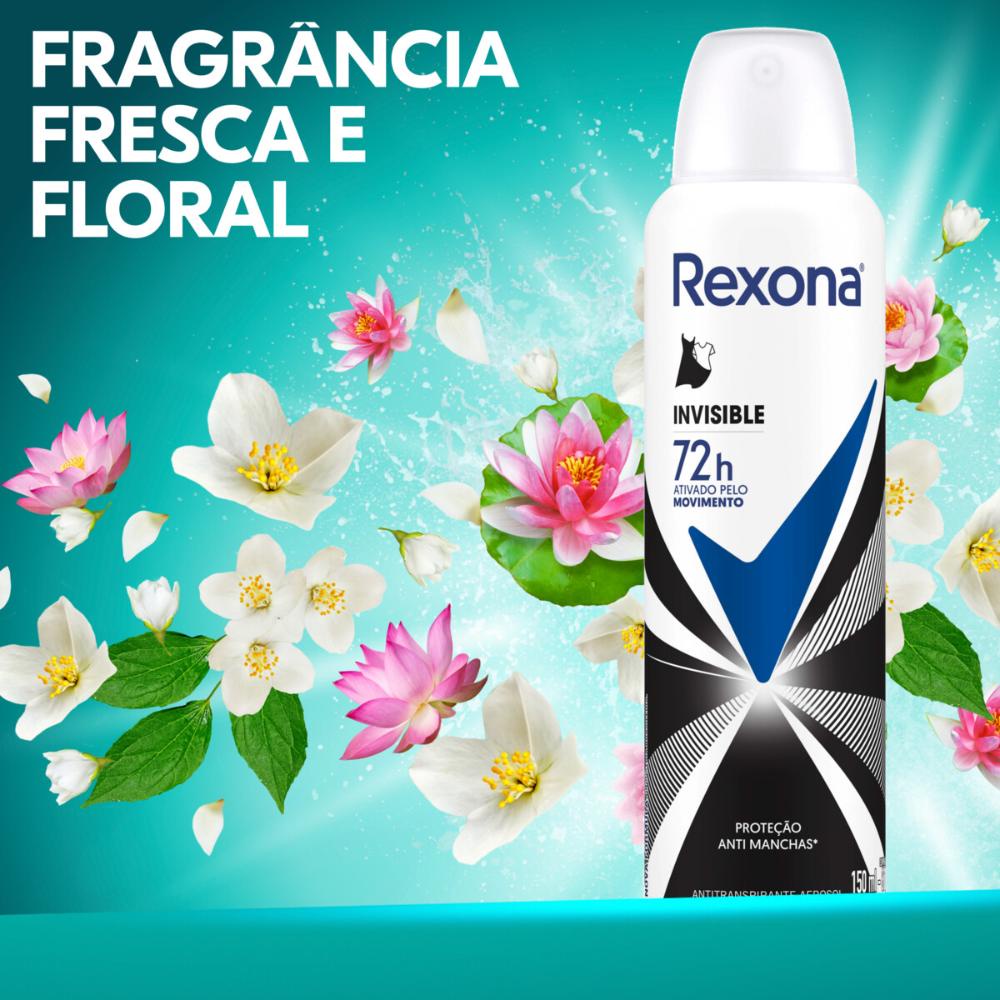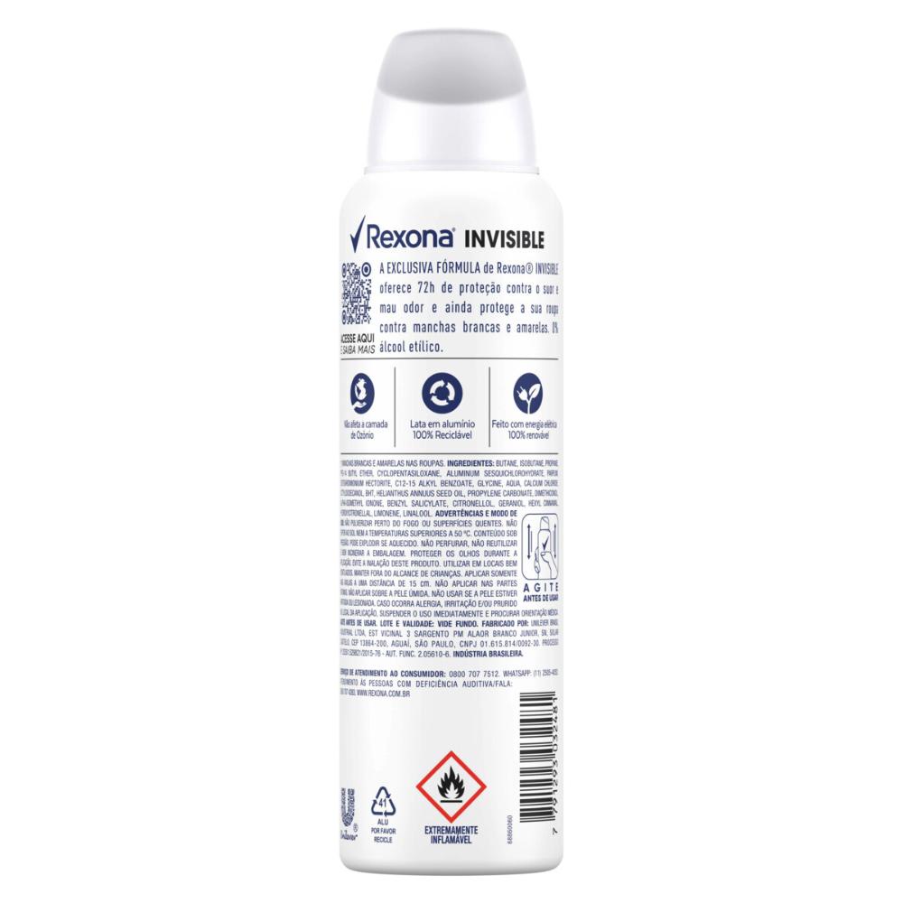 Kit com 3 Desodorantes Antitranspirantes Aerosol Feminino Rexona Invisible 72 horas 150ml