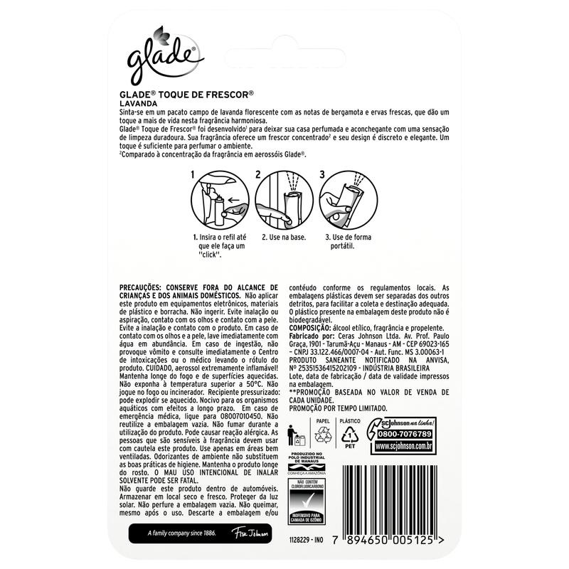 Odorizador de Ambiente Glade Lavanda Toque de Frescor 12ml Cada Refil Leve 3 Pague 2 Unidades