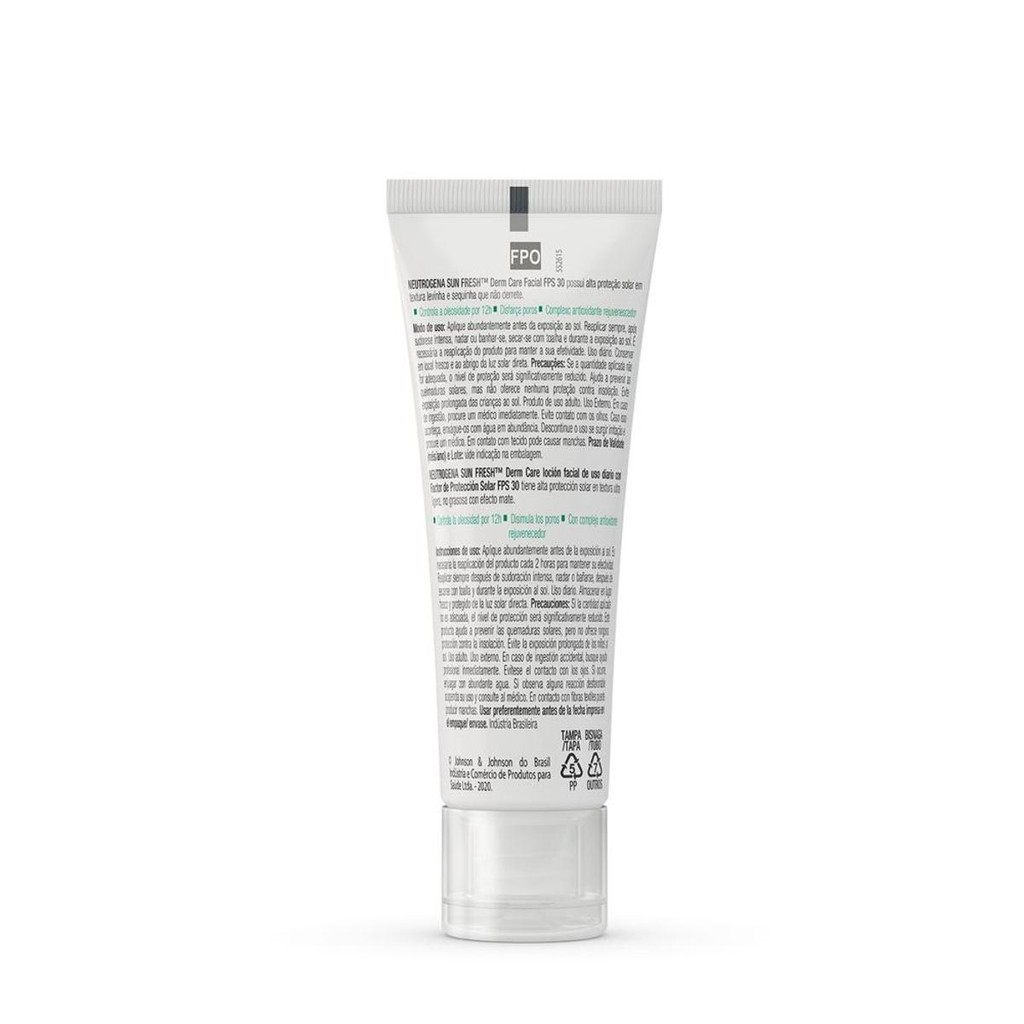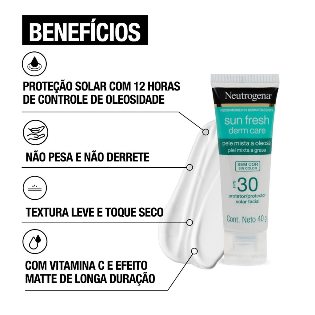 Protetor Solar Facial Pele Oleosa Neutrogena Sun Fresh Derm Care sem Cor FPS30 40g