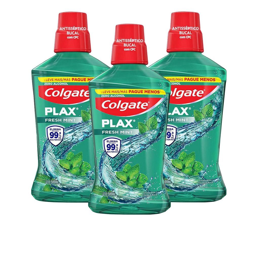 Kit Enxaguante Bucal Colgate Plax Fresh Mint 500ml Leve 500ml Pague 350ml com 3 unidades