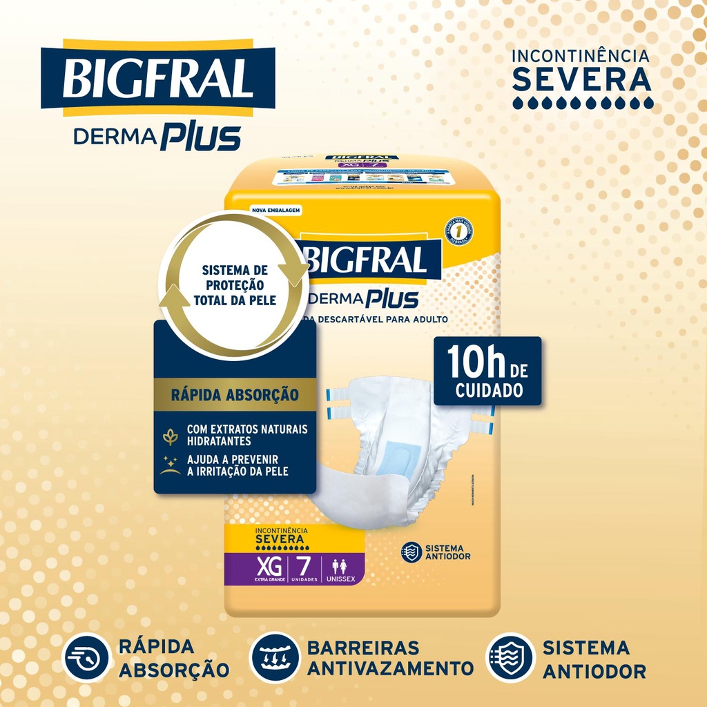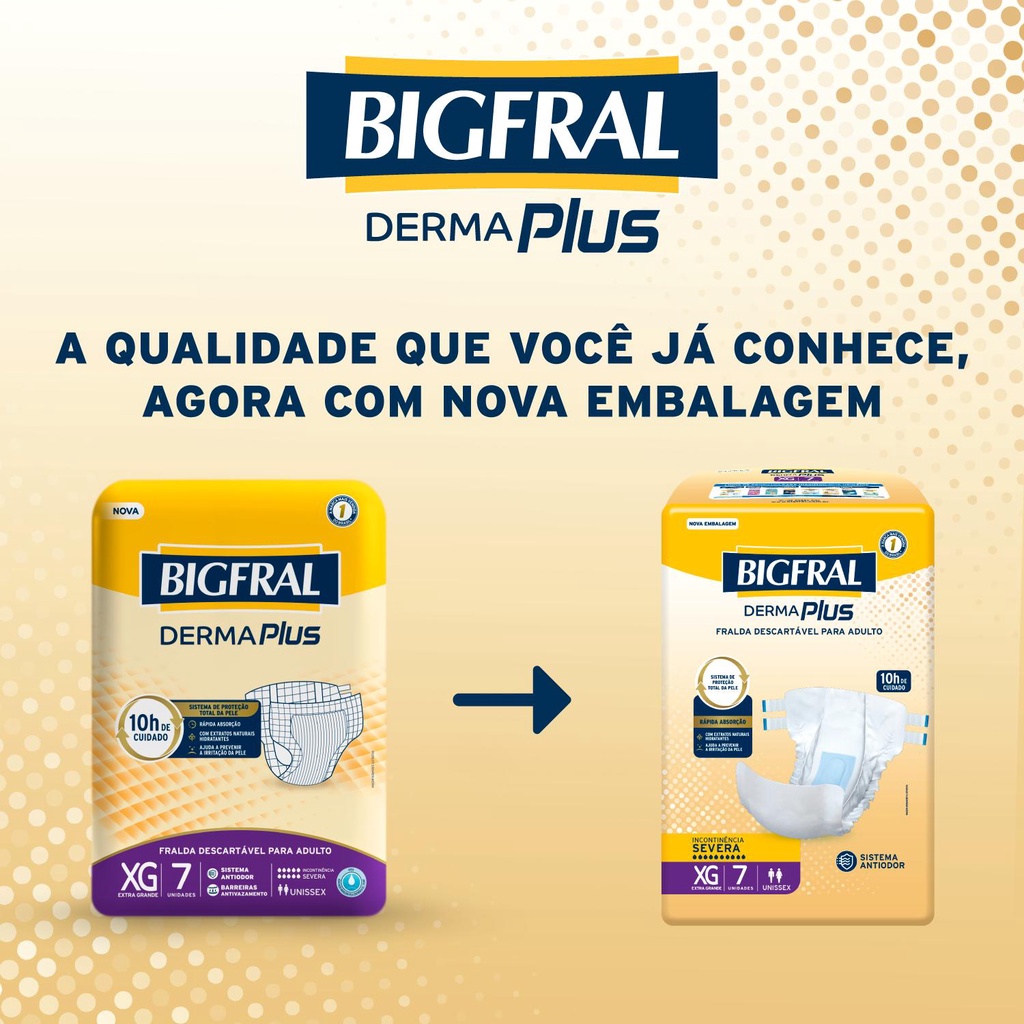 Kit 6 Fraldas Geriátricas Bigfral Derma Plus XG com 7un cada