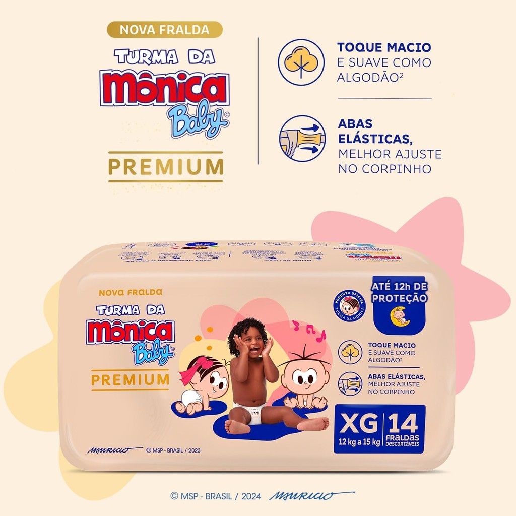 Kit 4 Fralda Turma da Mônica Baby Premium Jumbo XG com 14un cada