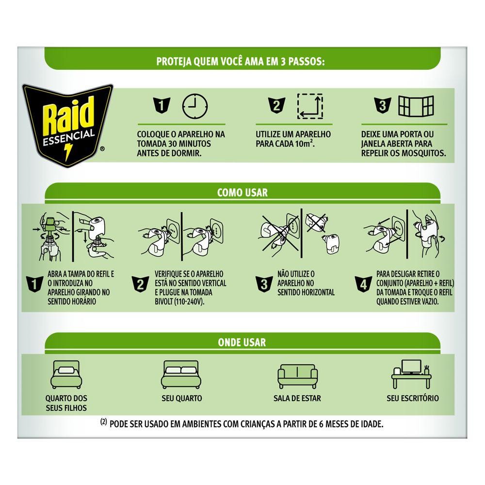 Repelente Elétrico Líquido Raid 45 Noites à Base de Plantas Essencial Caixa 2 Unidades 25,2ml Cada Refil Embalagem Econômica