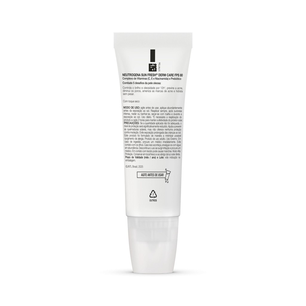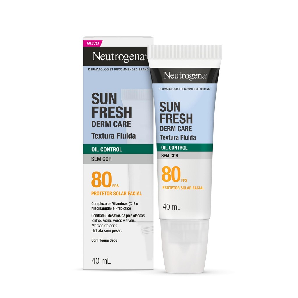 Protetor Solar Facial Neutrogena Sun Fresh Derm Care Oil Control Fluído sem Cor FPS 80 40mL