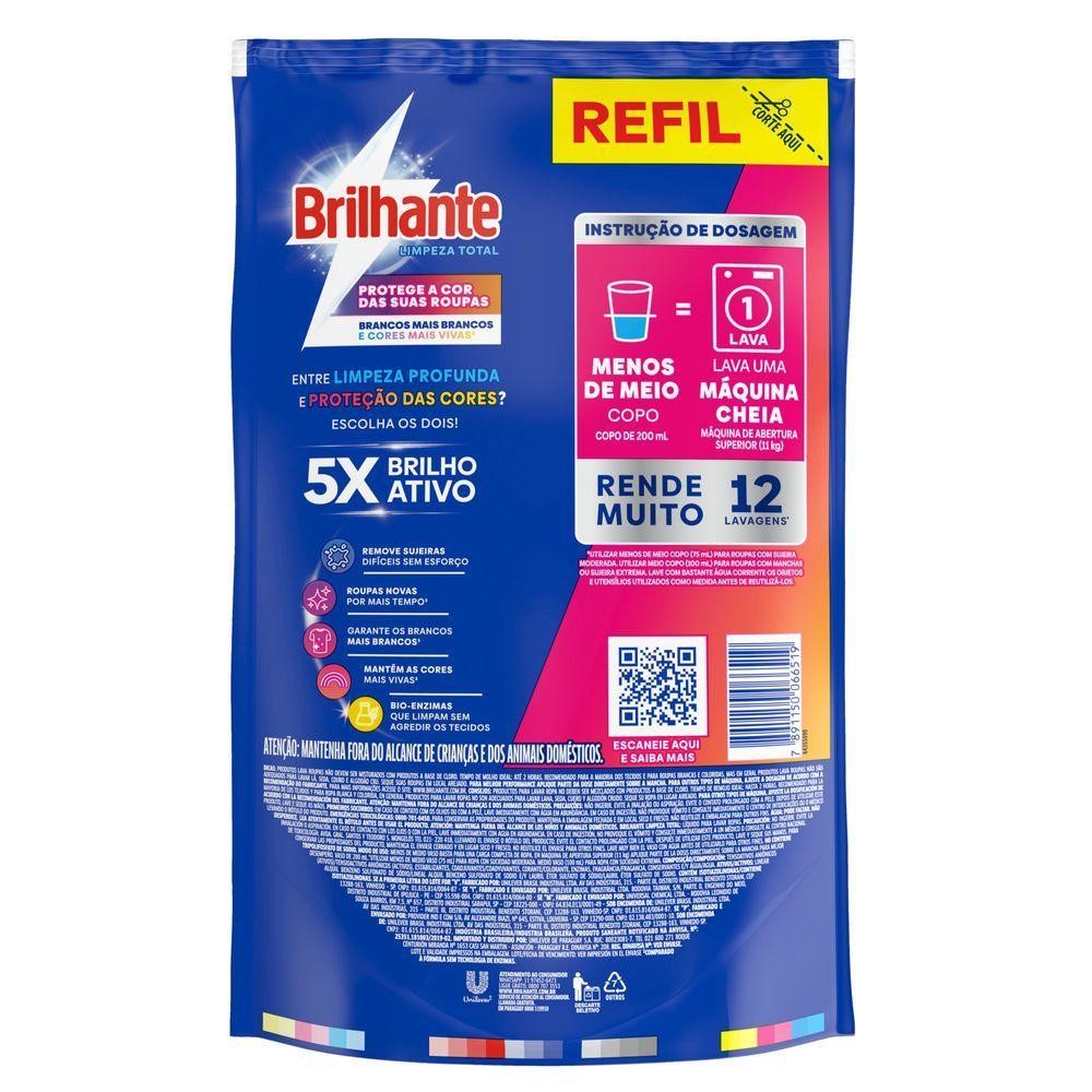Kit 4 Refil Lava Roupas Líquido Brilhante Roupas Brancas e Coloridas Limpeza Total 900ml