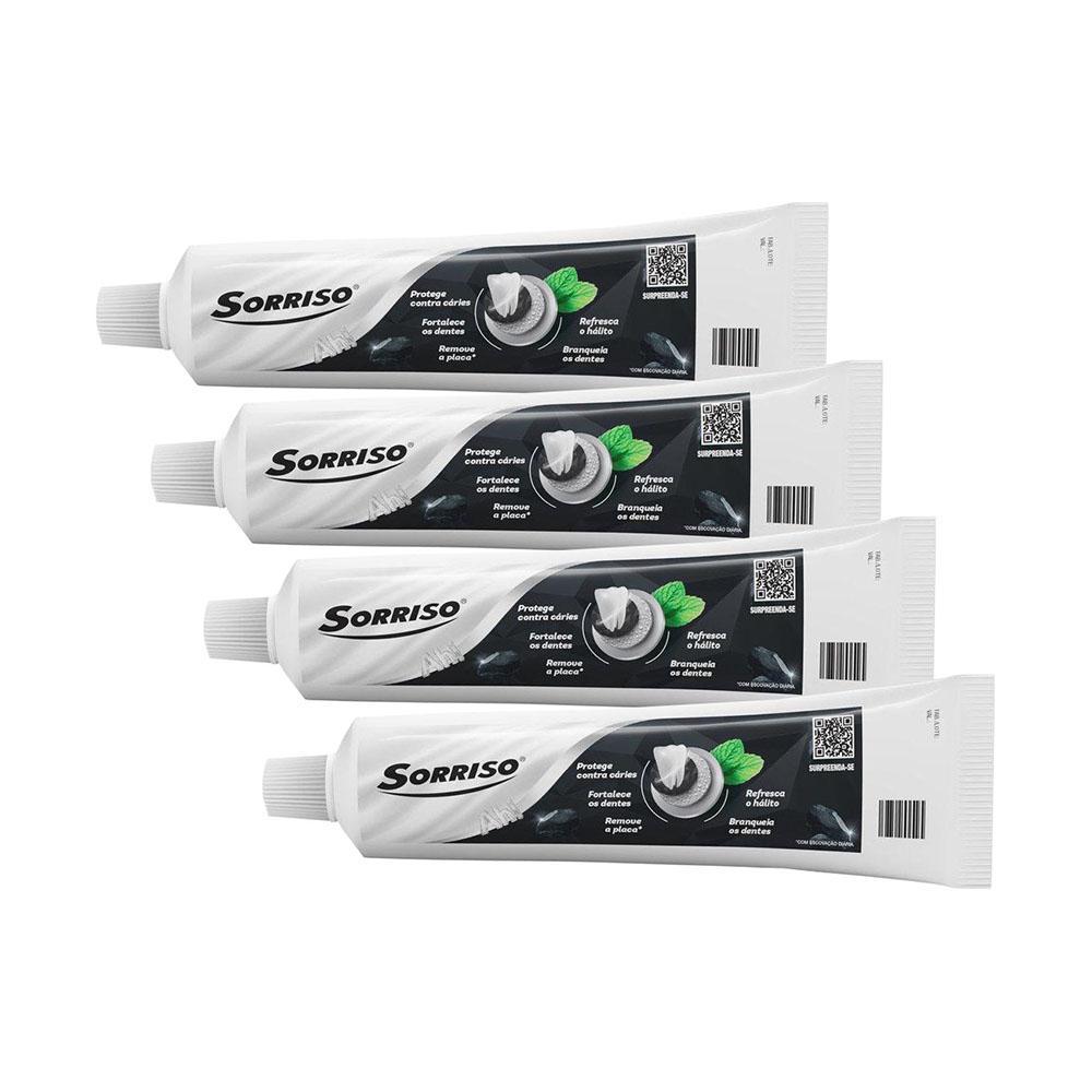 Kit 4 Cremes Dentais Clareador Sorriso Carvão Ativado 140g