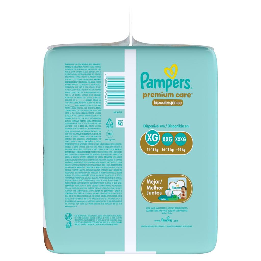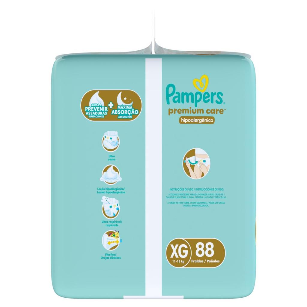Fralda Descartável Infantil Pampers Premium Care XG Pacote 88 Unidades