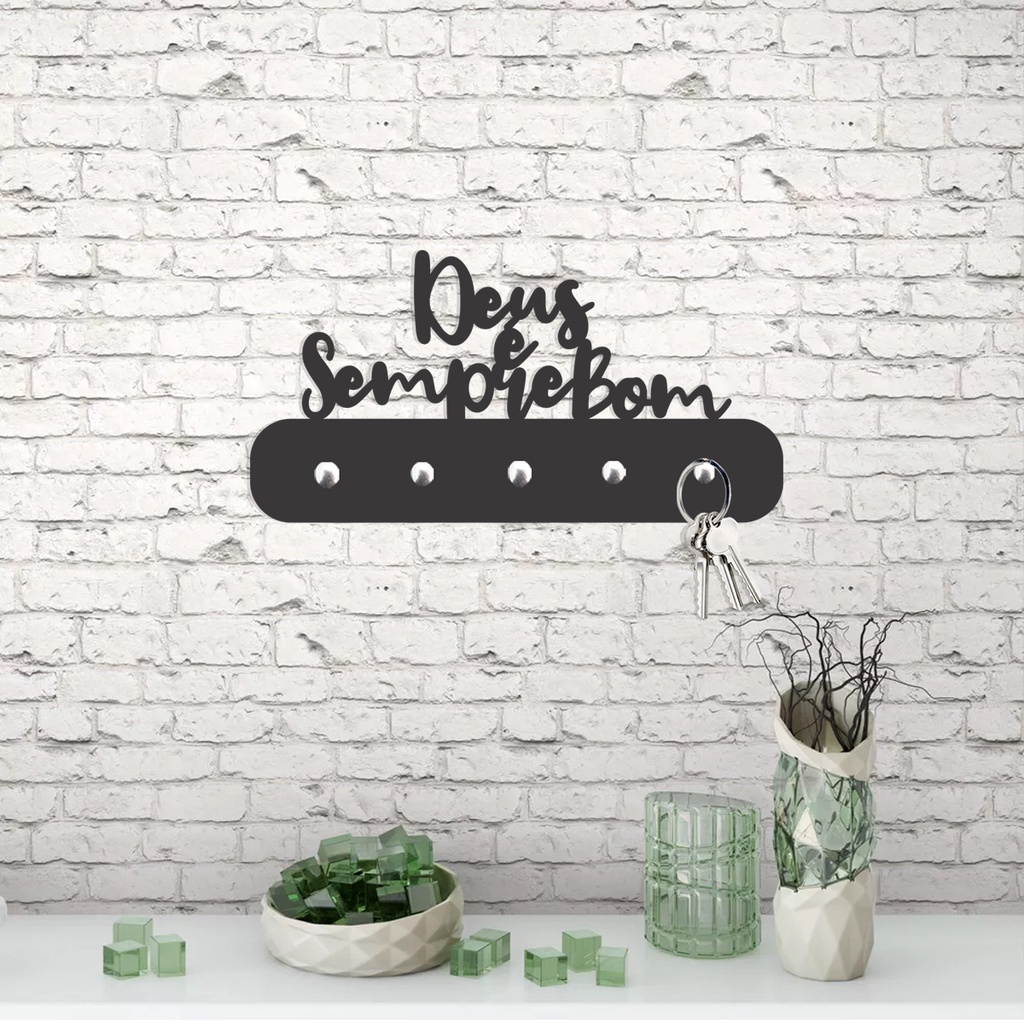 Porta Chaves de Parede Deus é Sempre Bom em MDF Preto Fosco