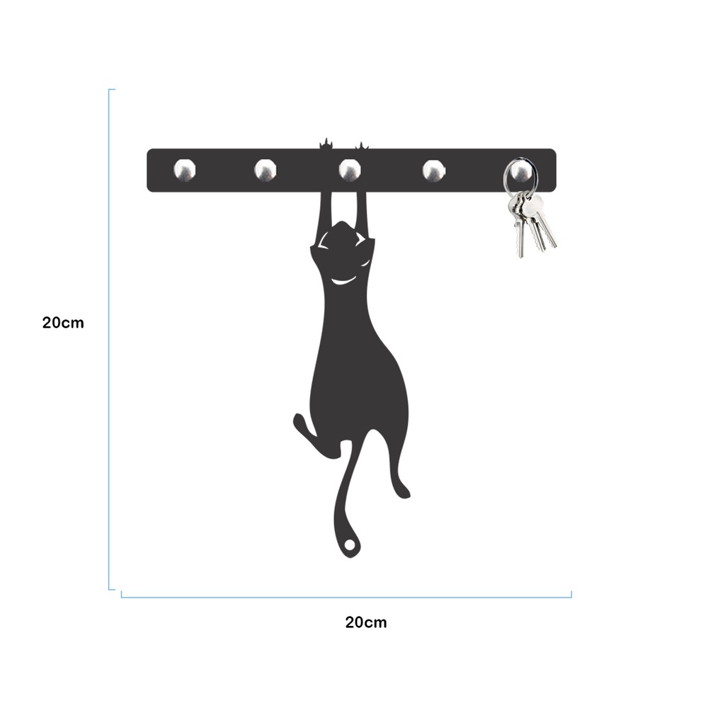 Porta Chaves Gato Pendurado Decorativo de Parede em MDF 3mm Preto Fosco