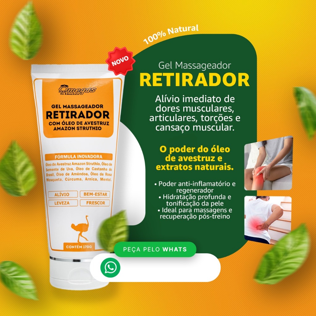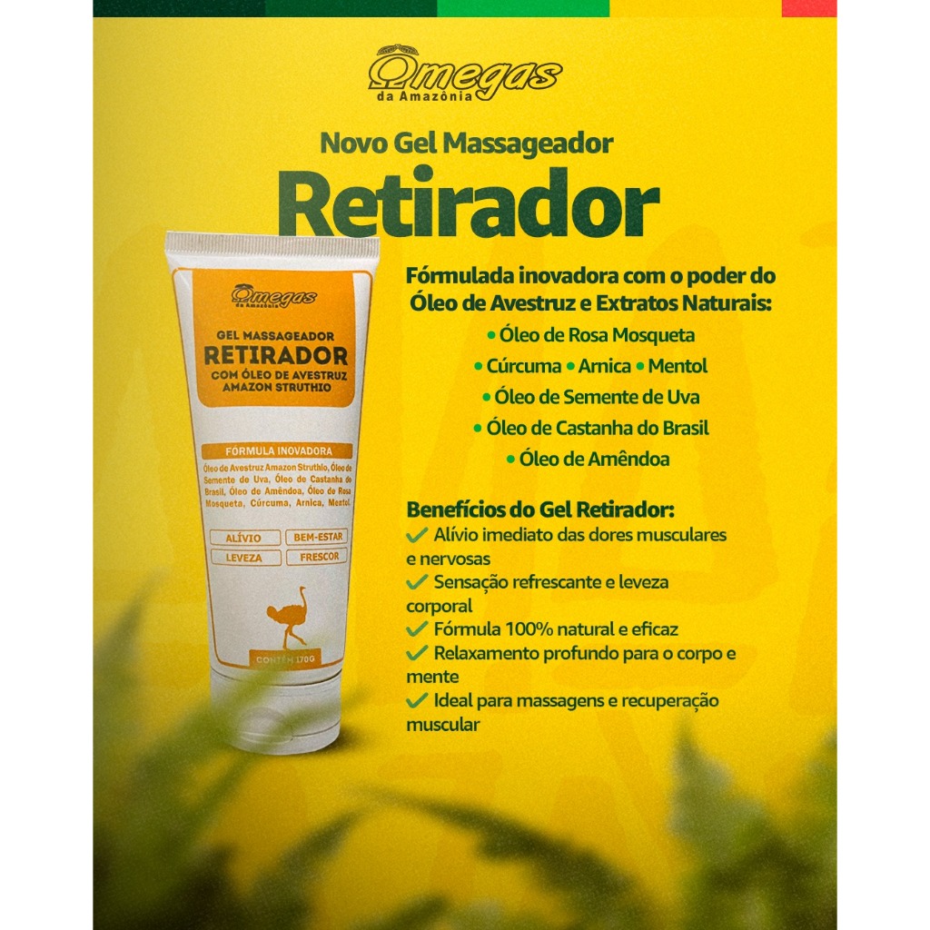 RETIRADOR Gel Massageador com Óleo de Avestruz -170g - Amazon Struthio