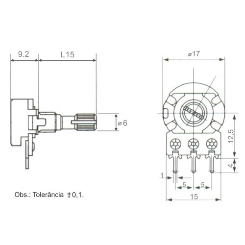 Kit 10 Peças - Potênciometro Linear Rotativo 20k L15 Mini Wh148-1