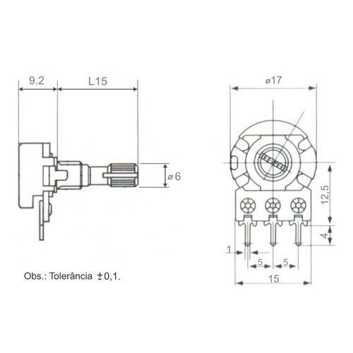 Kit 100 Peças - Potênciometro Linear Rotativo 100k L15 Mini