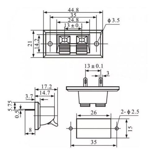 Kit 5 Peças - Borne De Pressão 2 Vias Wp2-3 Para Audio