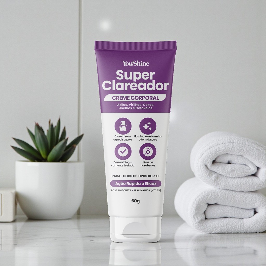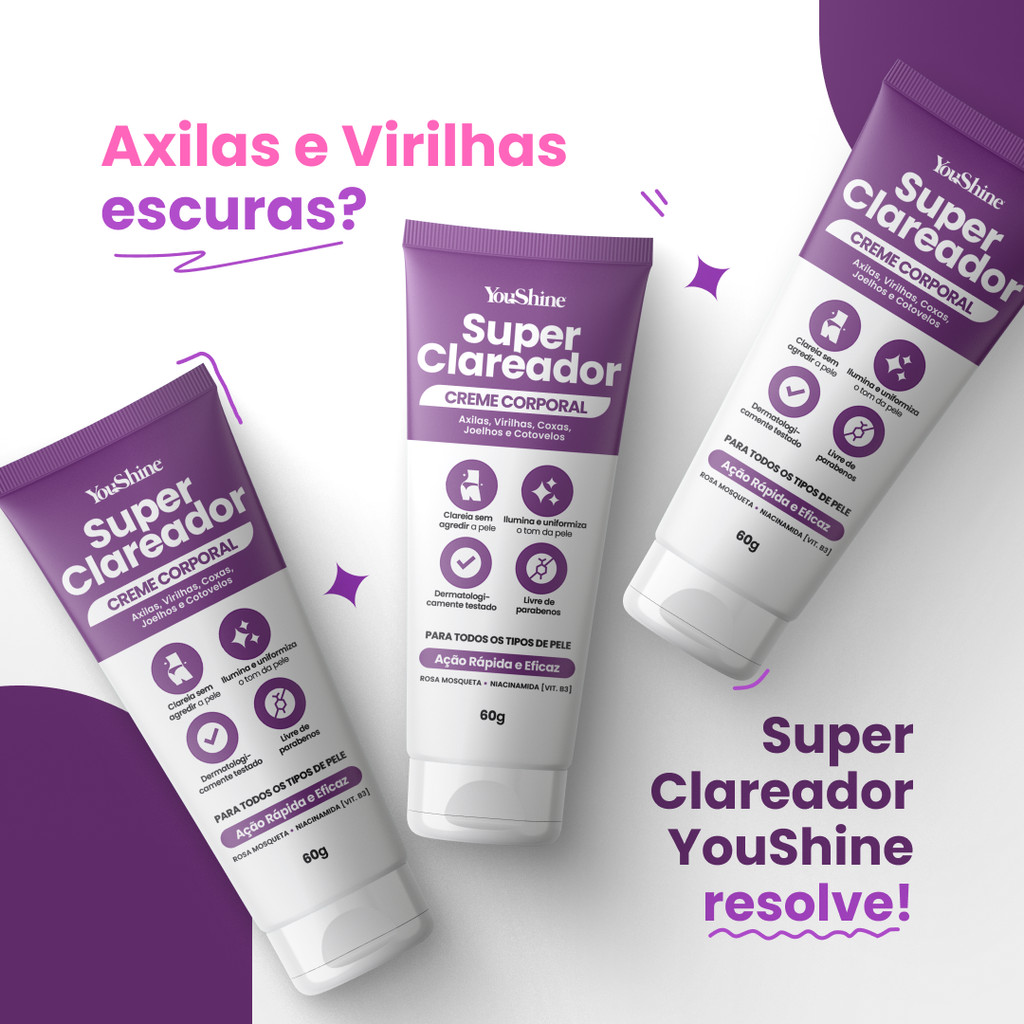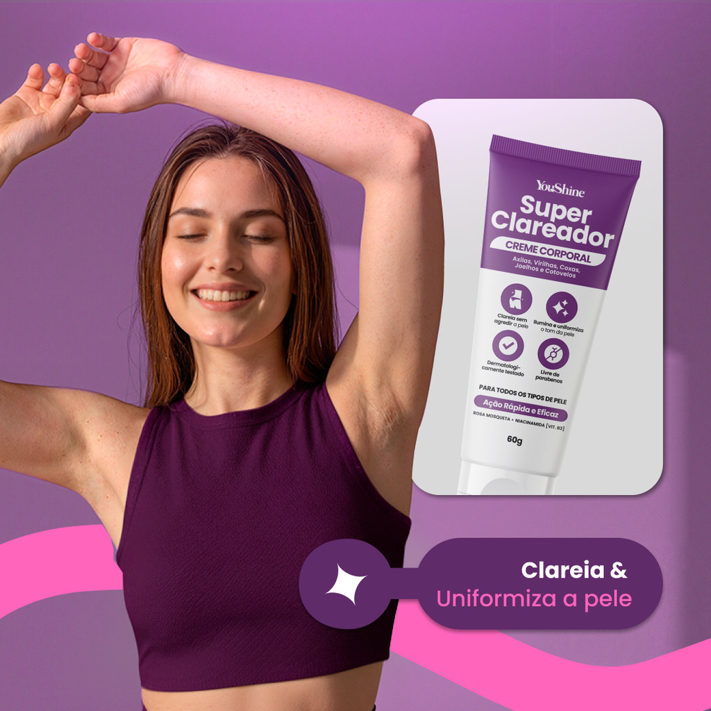 Creme Super Clareador De Virilha e Axila Manchas Escuras YouShine 60g Niacinamida e Rosa Mosqueta