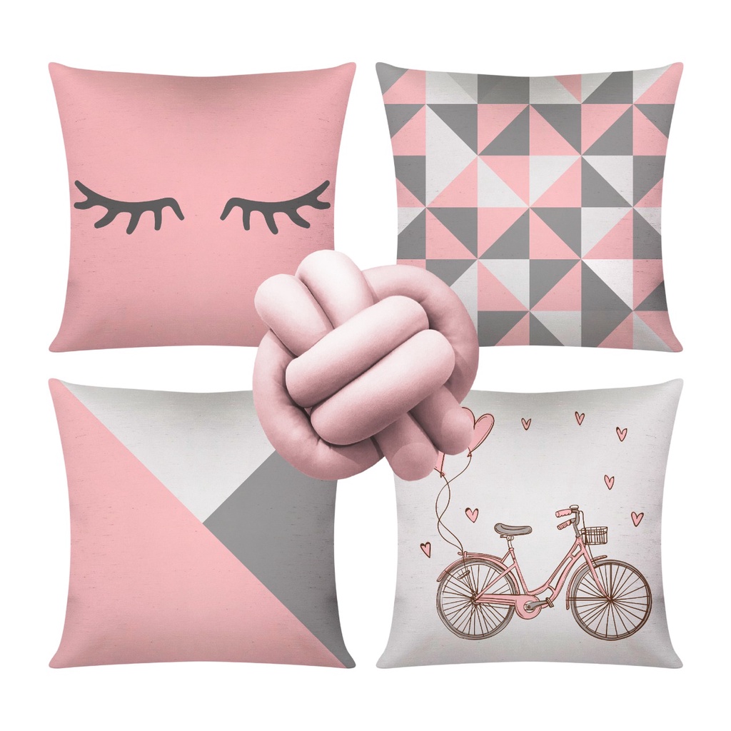 Kit c/ 4 Capas de Almofada Decorativas 42x42 + 1 Almofada de Nó Kit Cílios Bike