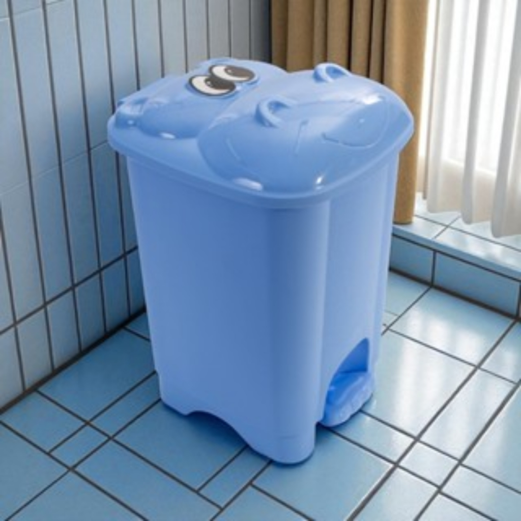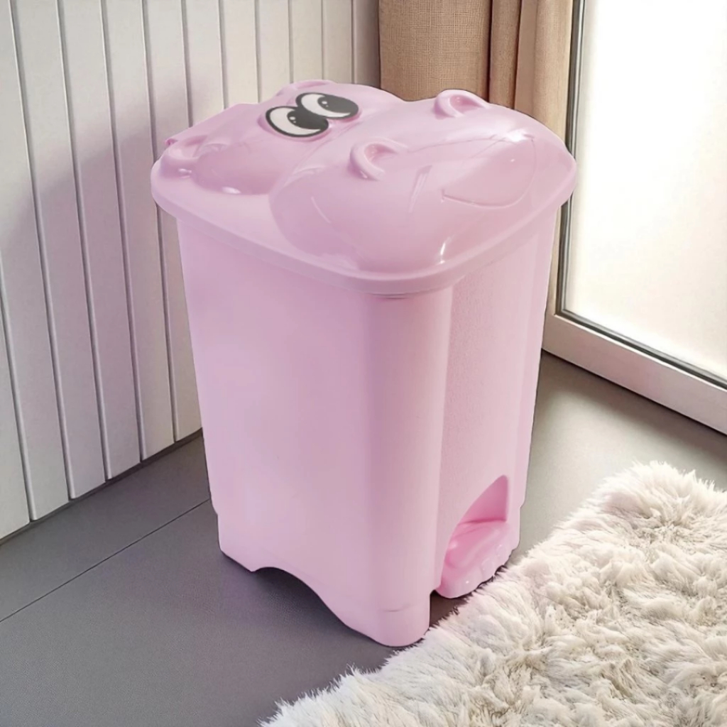 Lixeira Infantil 6L Tampa De Hipopótamo Com Pedal Rosa, Azul ou Verde - Giotto