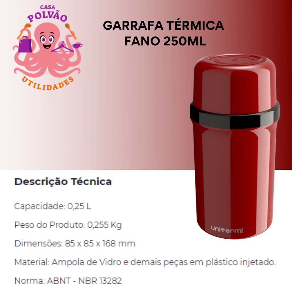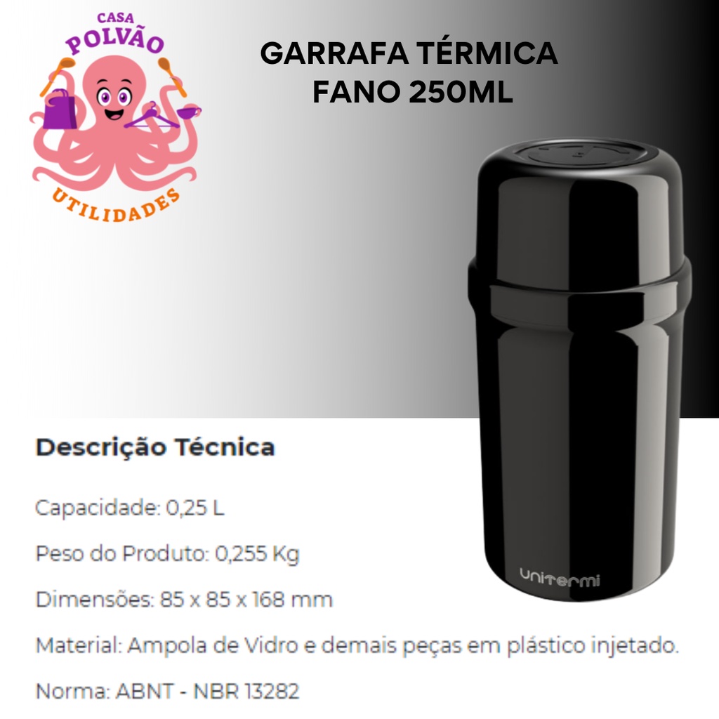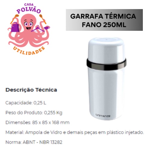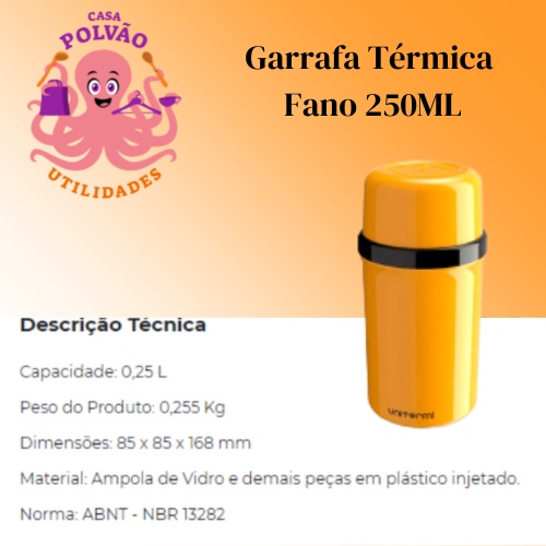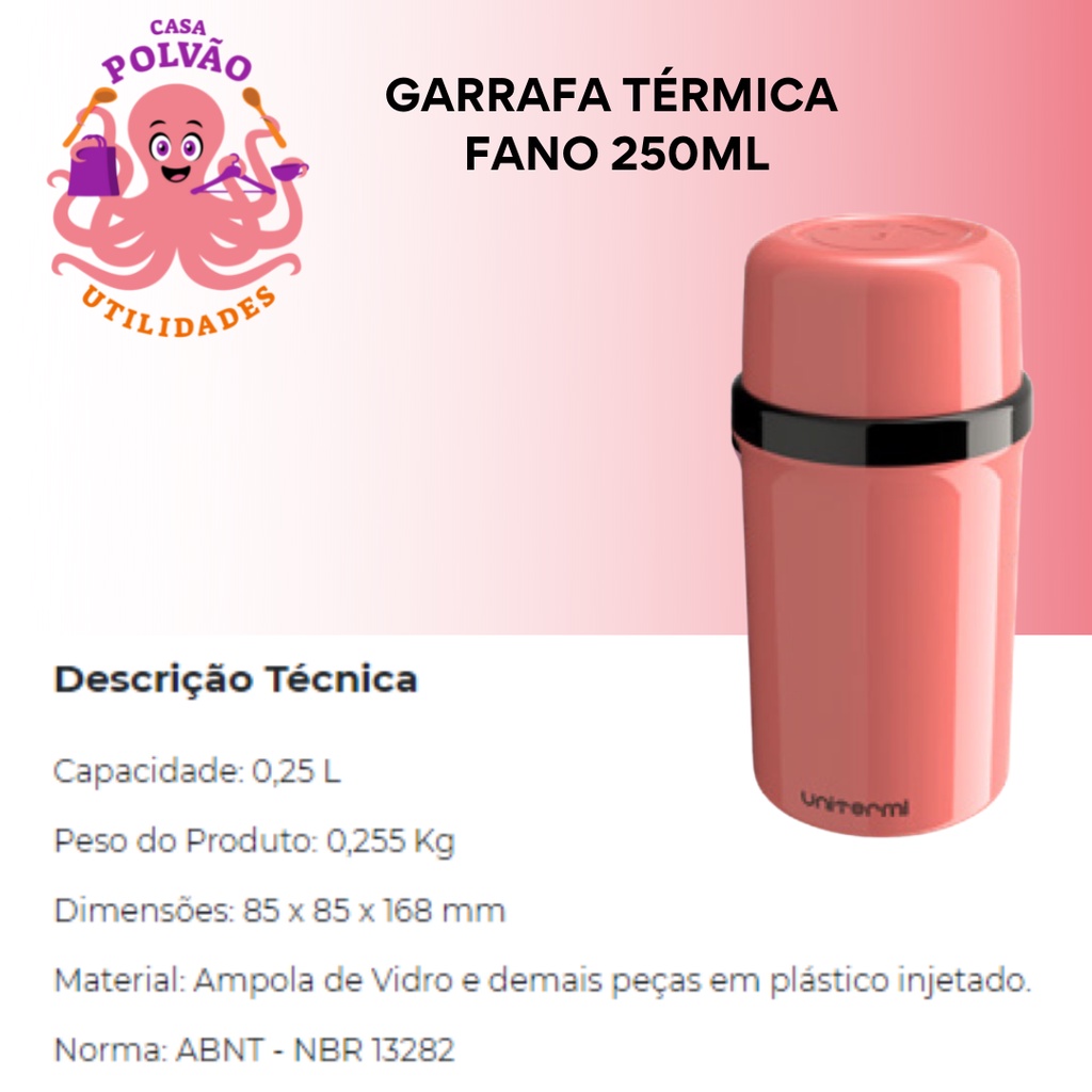 Garrafa Térmica 250ml Fano Escolar Unitermi Café Leite Chá Suco Água Ampola de Vidro Leve Portátil
