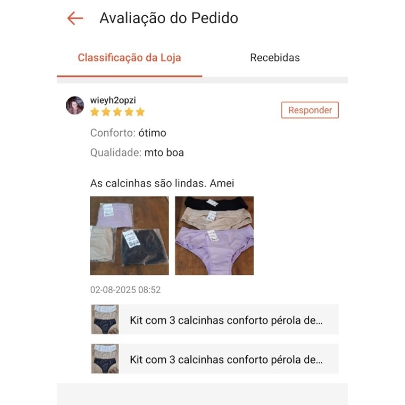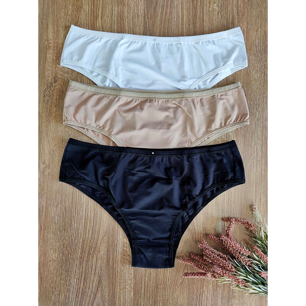 Kit com 3 calcinhas conforto pérola de microfibra com detalhe no elástico