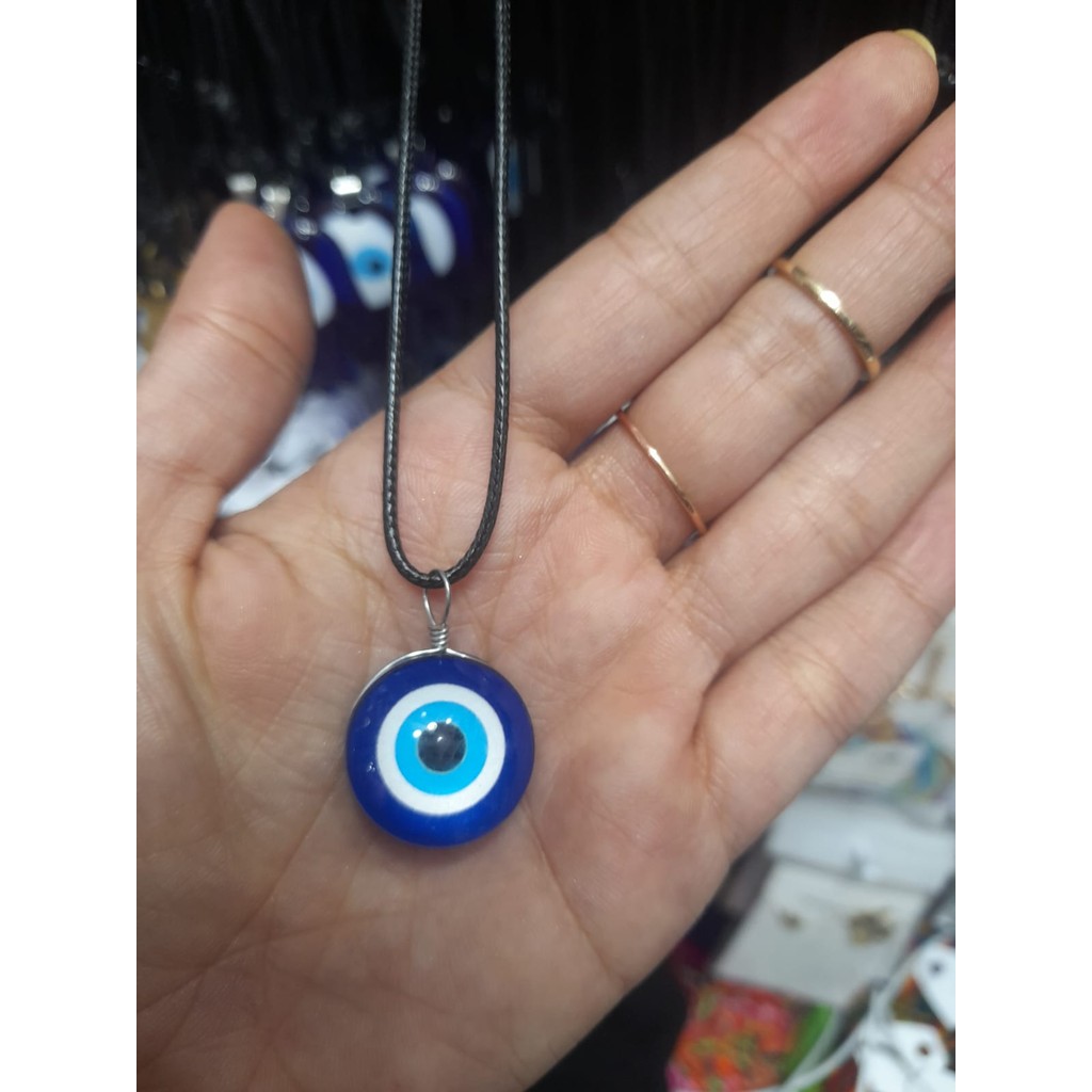 Colar Olho Grego Com Pingente - Proteção Inveja Mal Olhado Cordão Ajustavel Preto Ajustavel