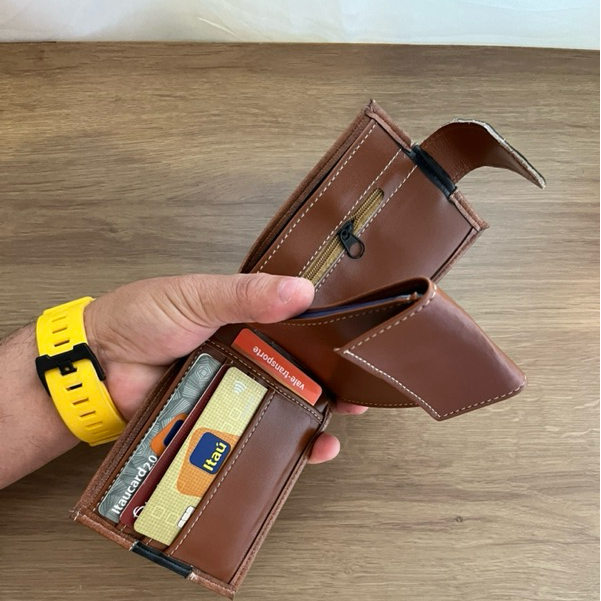 Carteira De Couro Nitty Com Botão Porta Documento Cartão Cnh