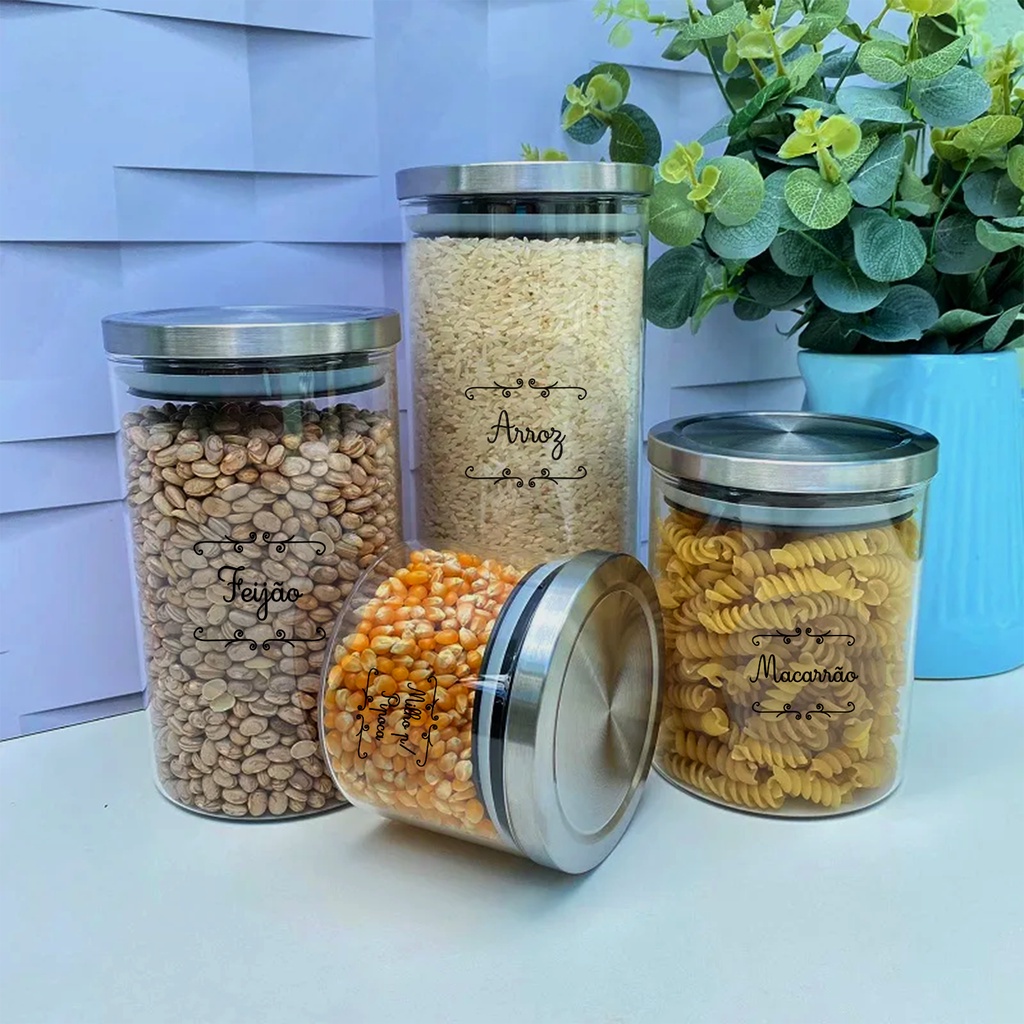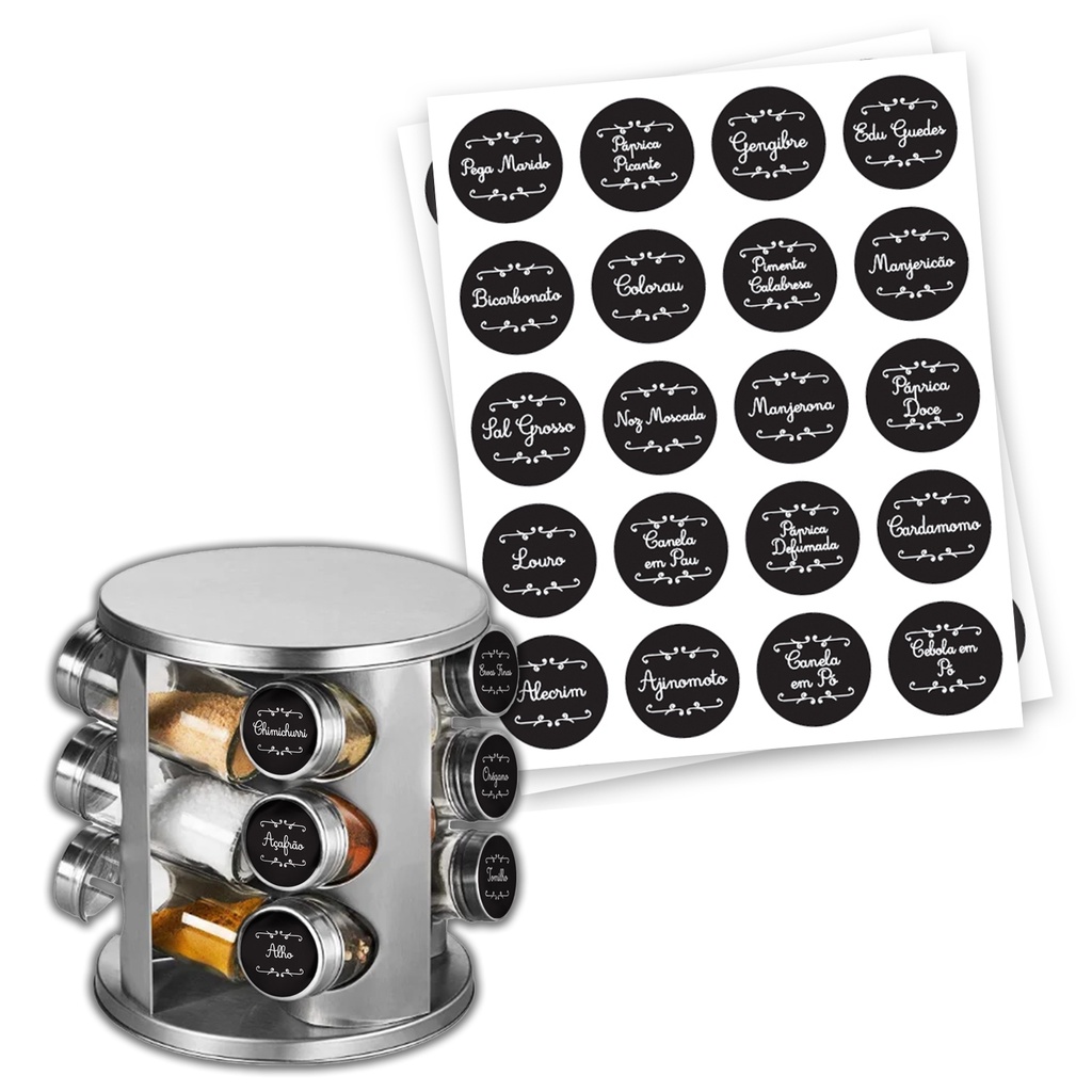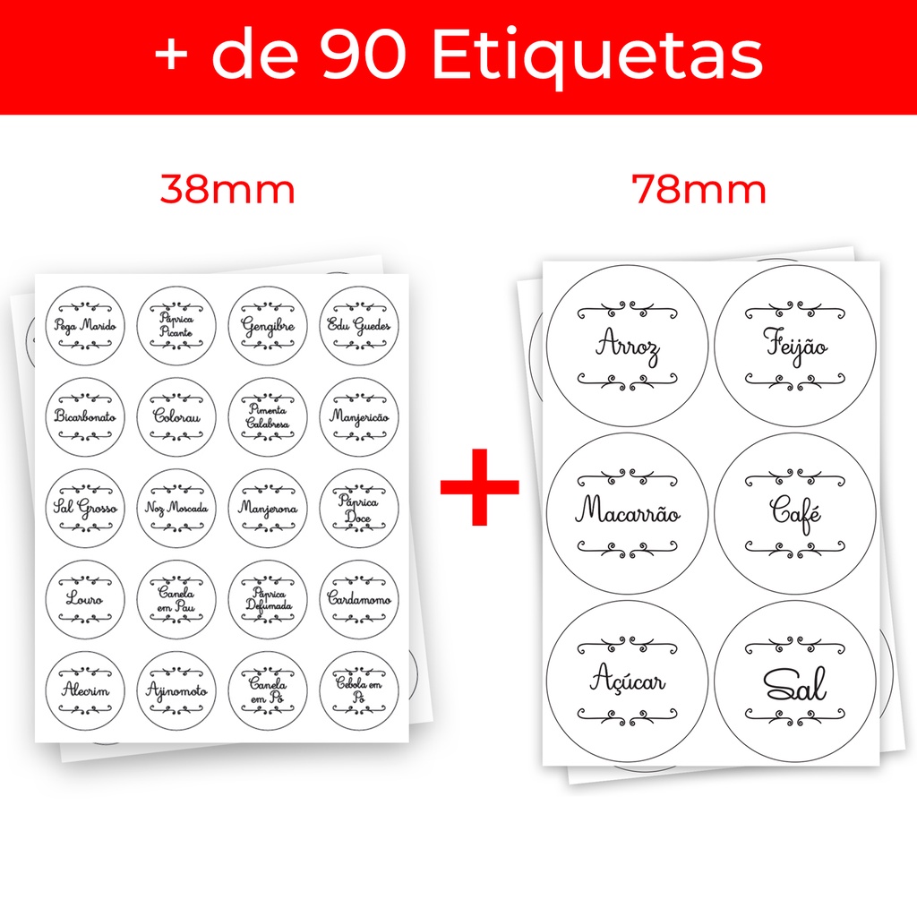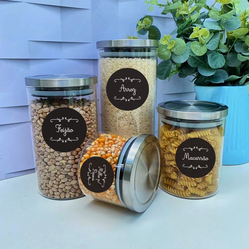 92 Etiquetas Adesivas Vinil para Condimentos Grãos Temperos Potes Organizadores Laváveis