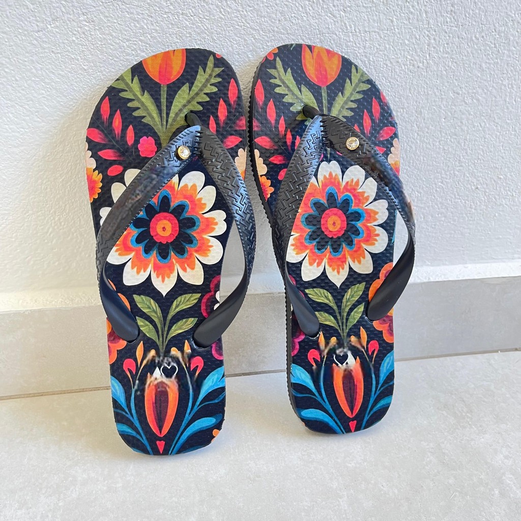 Chinelo Feminino Azul Floral Lançamento Verão 2025 com Envio Imediato