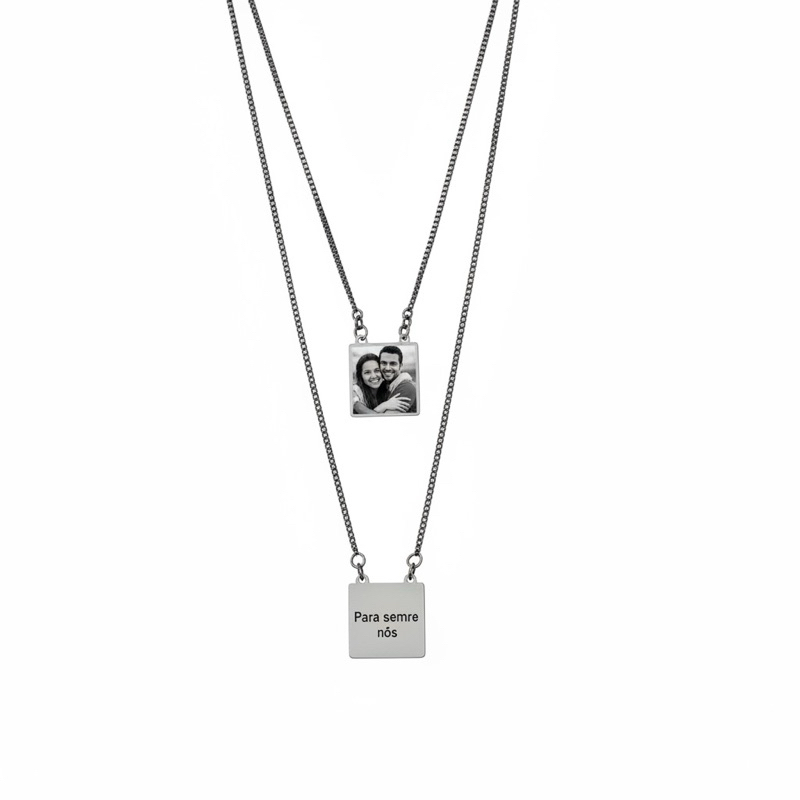 Colar Escapulário Personalizado com Foto Gravação a Laser Banhado a Prata925