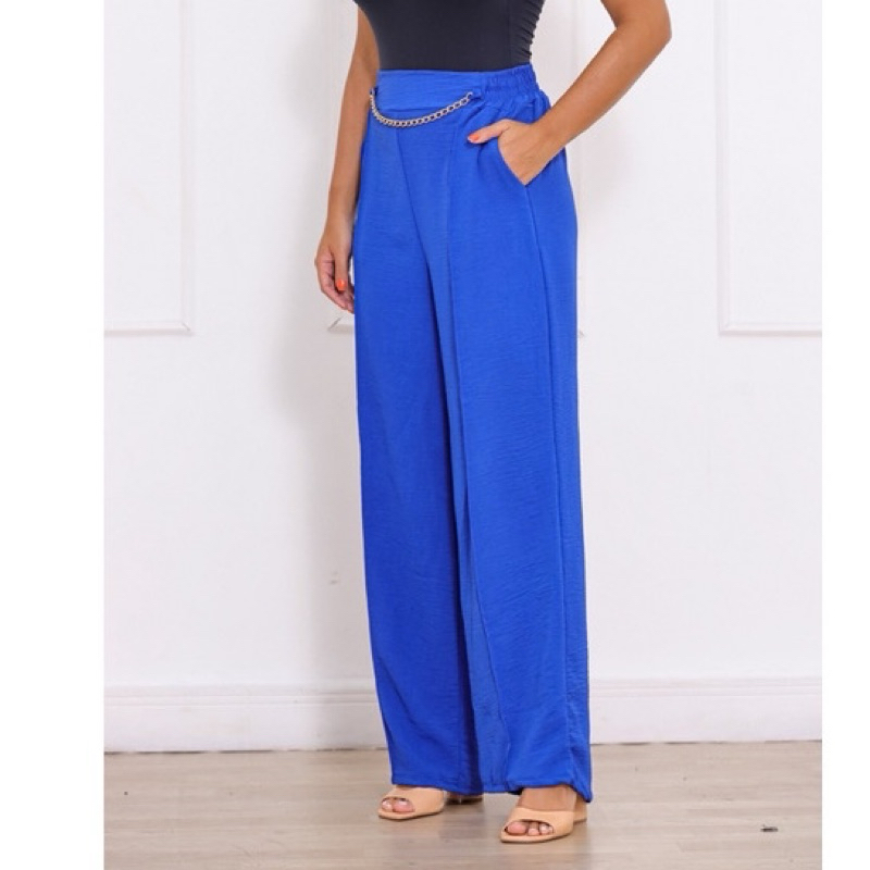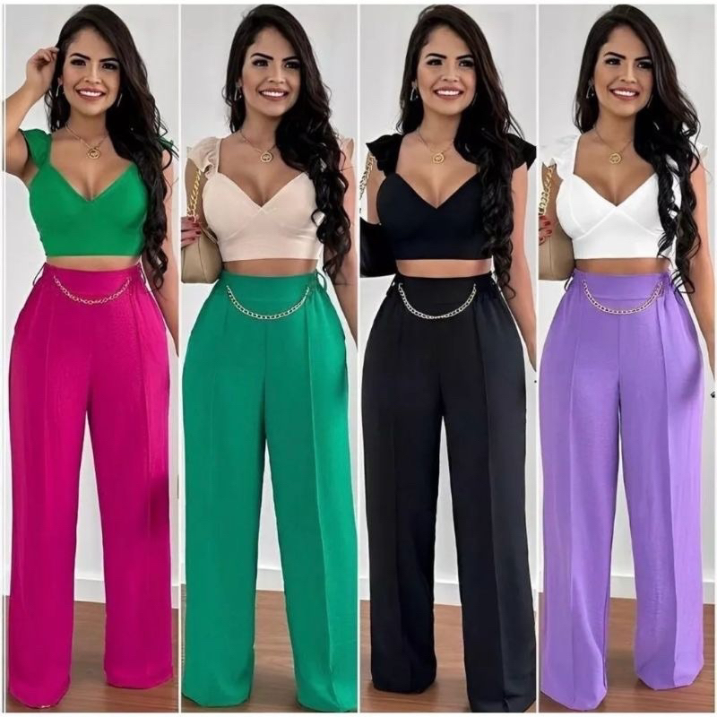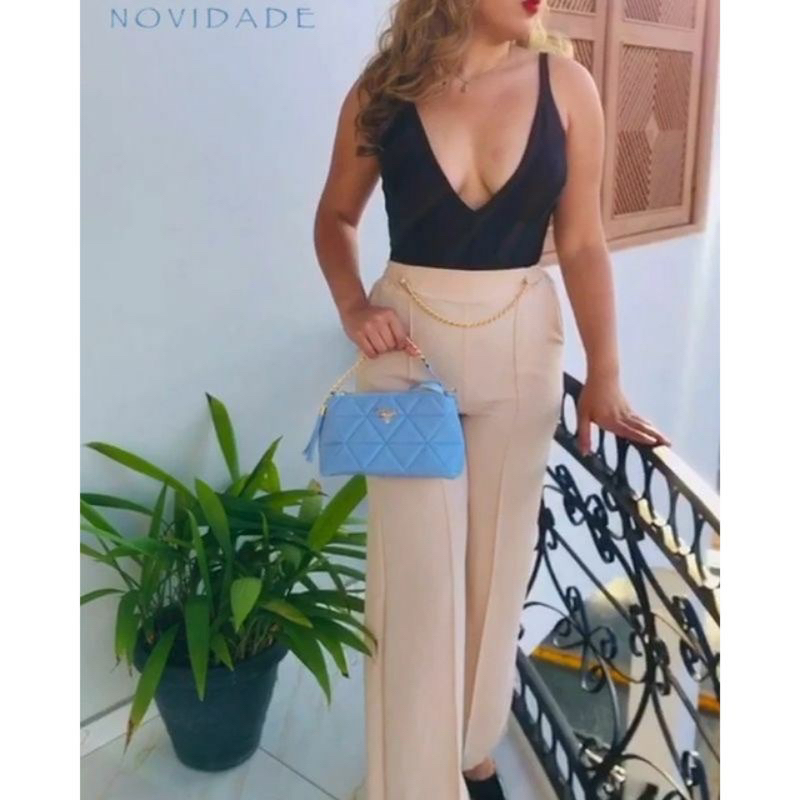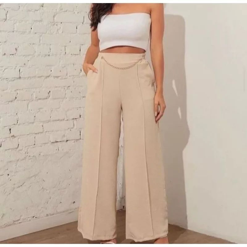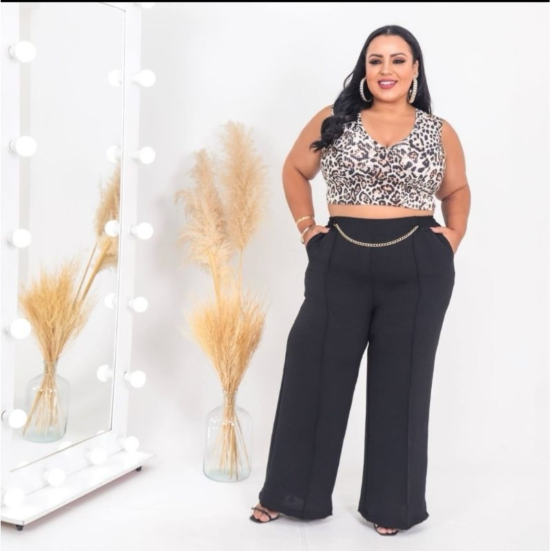 Calça Pantalona Tecido Duna Com Corrente Veste M G e GG
