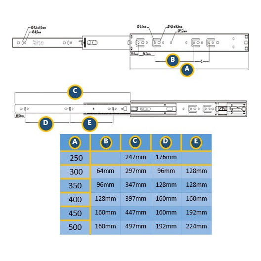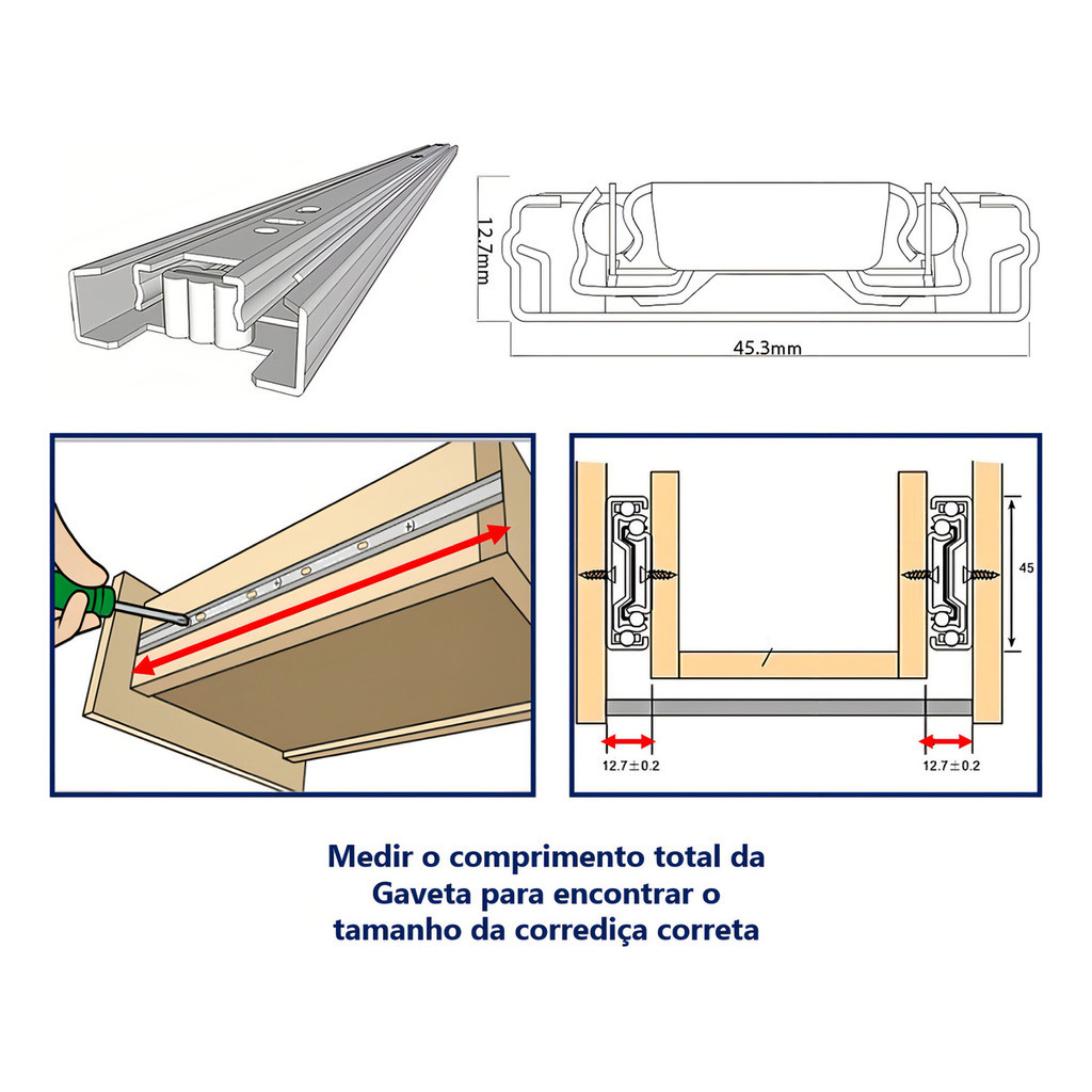 Par De Corrediça Telescópica 35cm Reforçada 45kgs O Par Cor Prateado