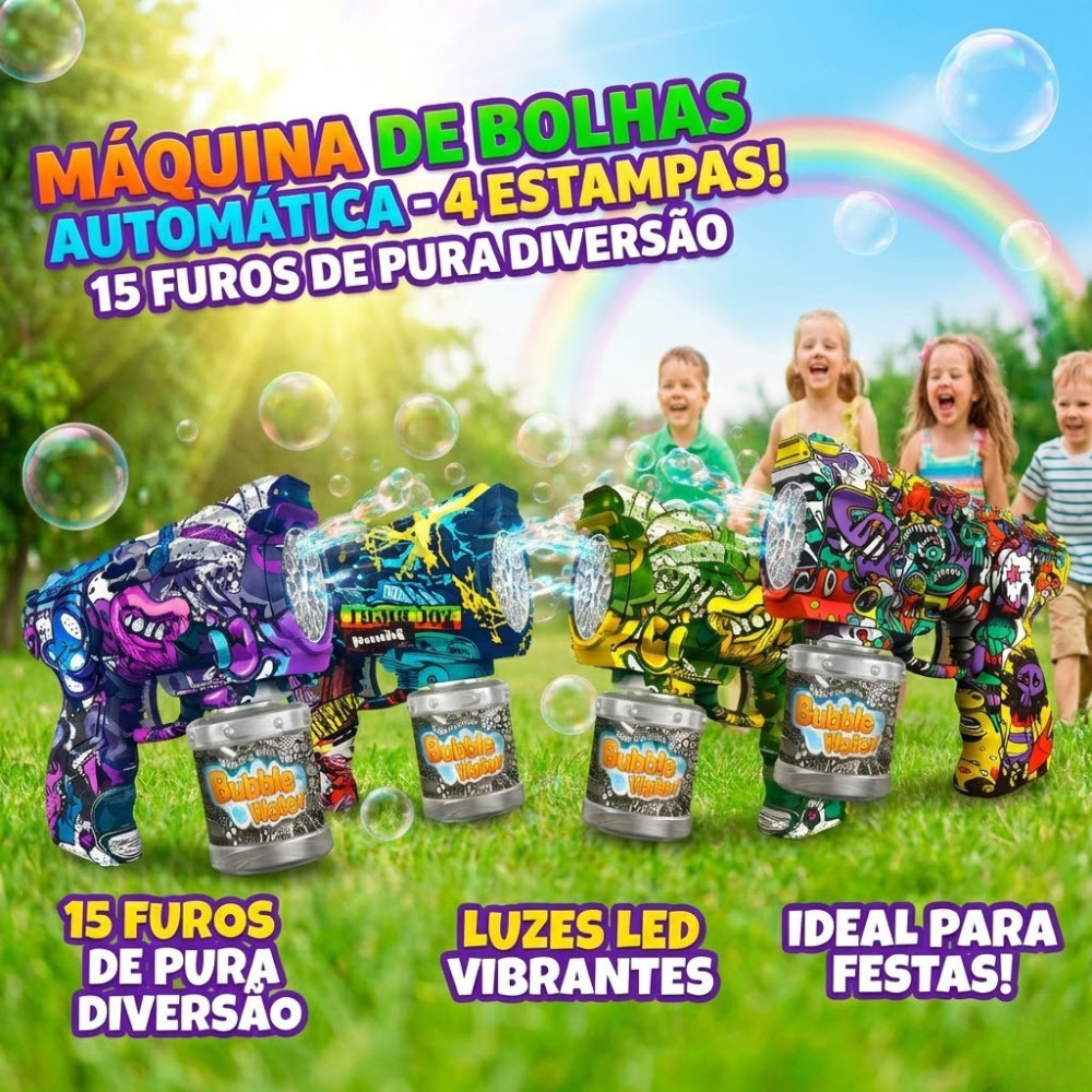 Bazuca Lança Bolhas Infantil com LED Colorido – Máquina Automática de Bolhas de Sabão Cores Azul Vermelho