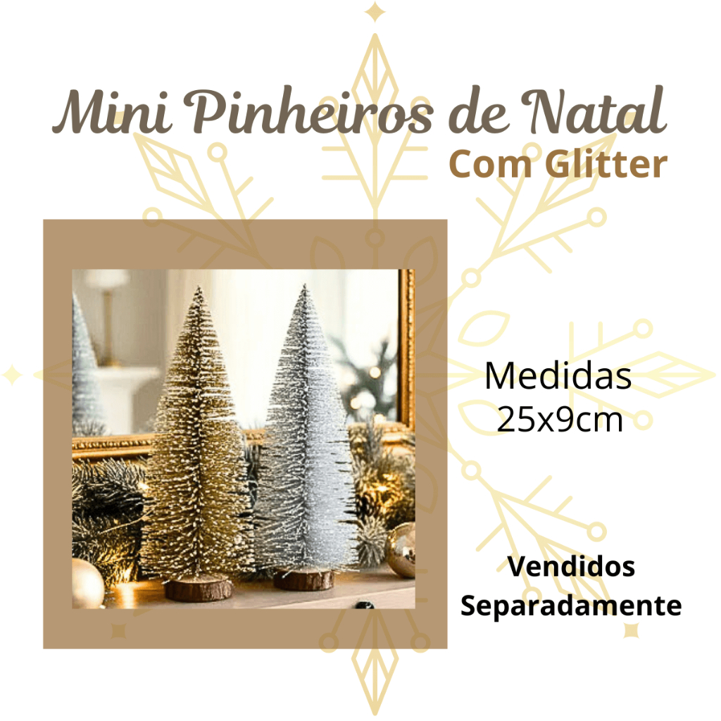 Mini Arvore Natal Glitter Neve Dourada Prata Pinheiro Mesa 25cm