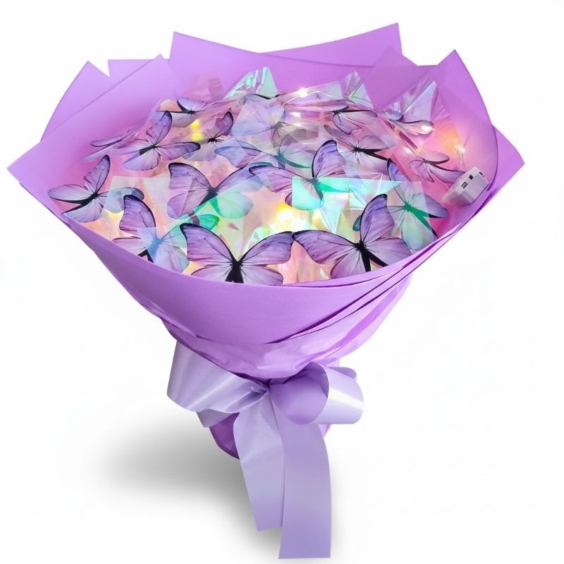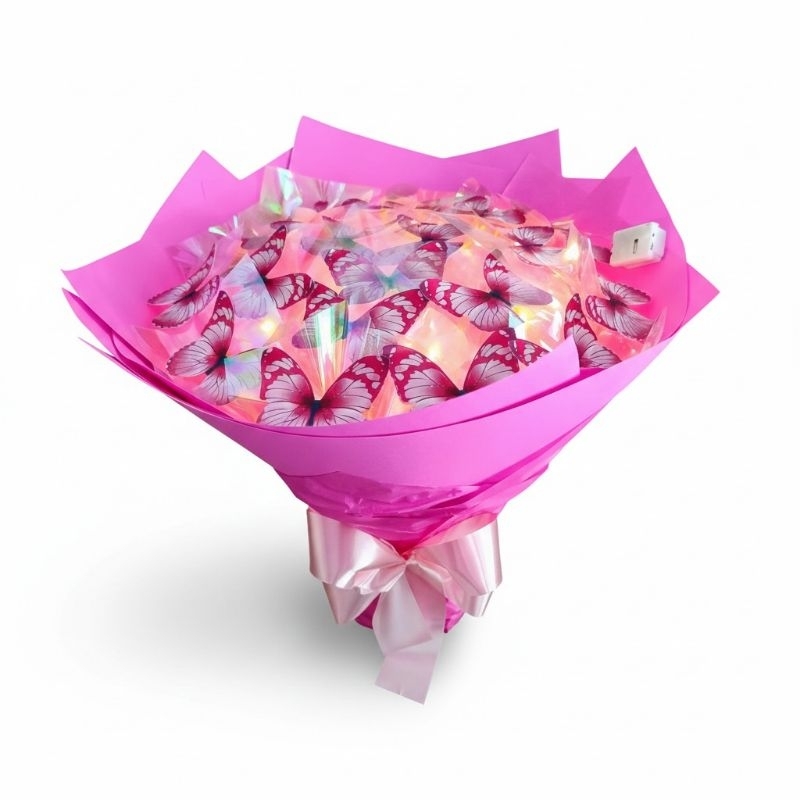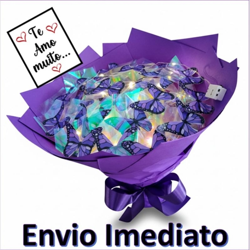 Buquê de 20 Borboletas Iluminado com LED + Cartão de Brinde - Presente Criativo Namorados e Aniversário