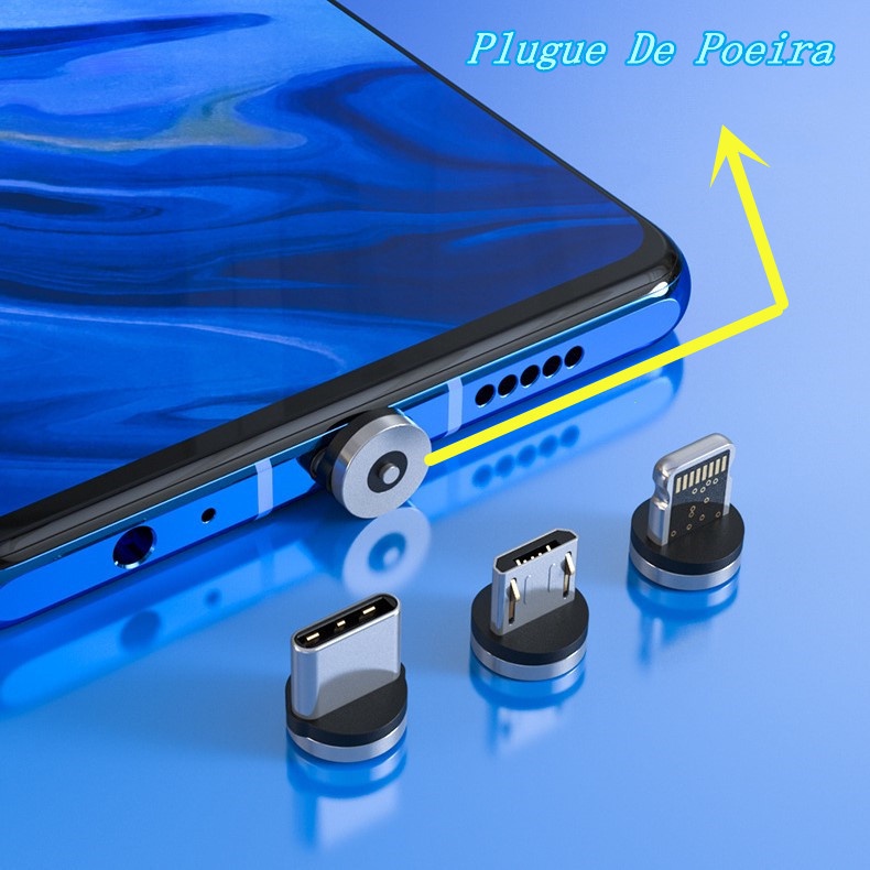 Cabo Carregador Magnético Usb 3 Em 1 IPhone, Android V8 E Tipo C Carregador