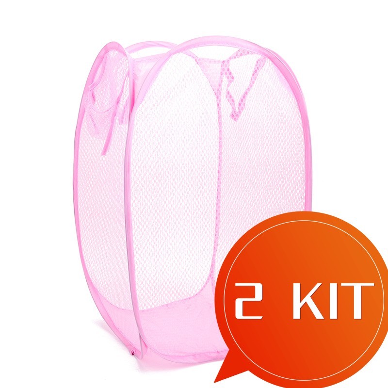 KIT 2 Cesto De Brinquedos 40x40x70cm Rosa Promoção Dobrável Para Roupas e Brinquedos Cesto