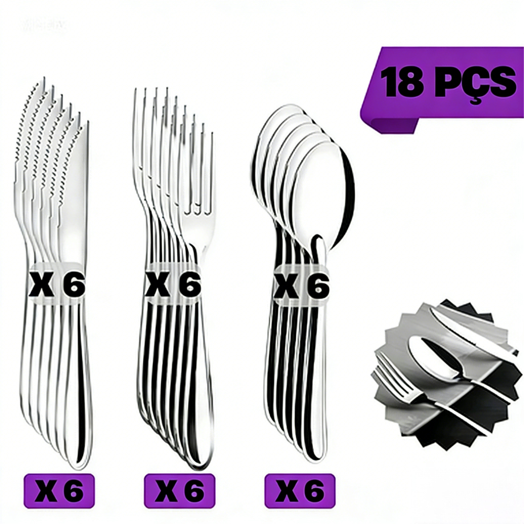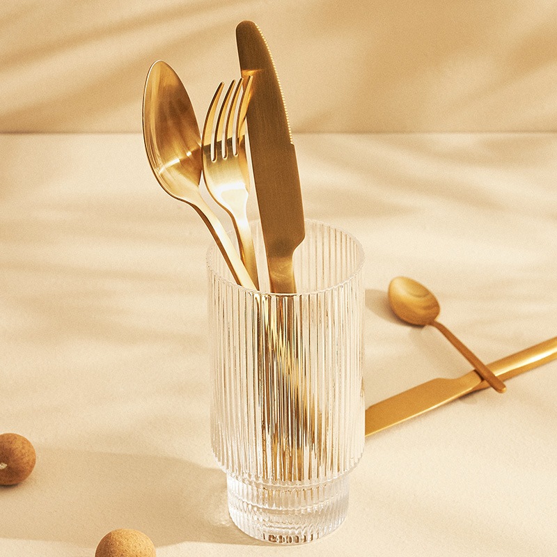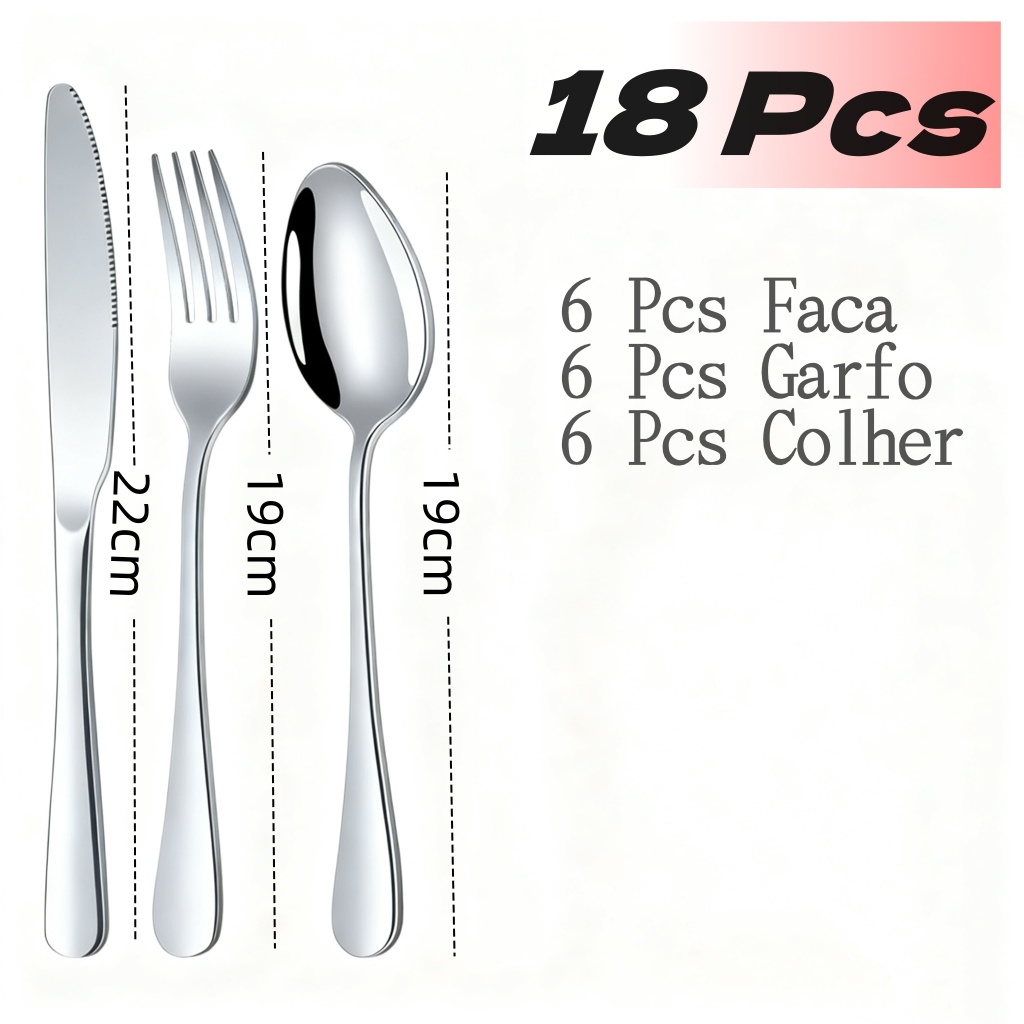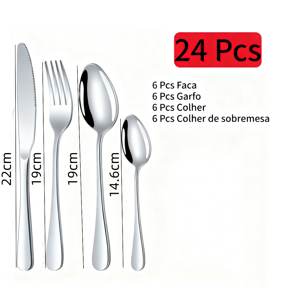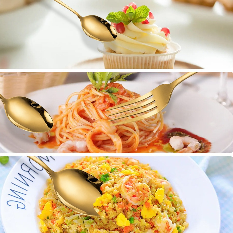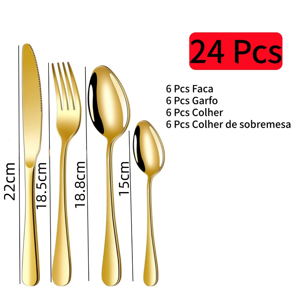 18/24/36 Talheres Individuais Faca Garfo Colher Sobremesa Inox Para Cozinha Dourado