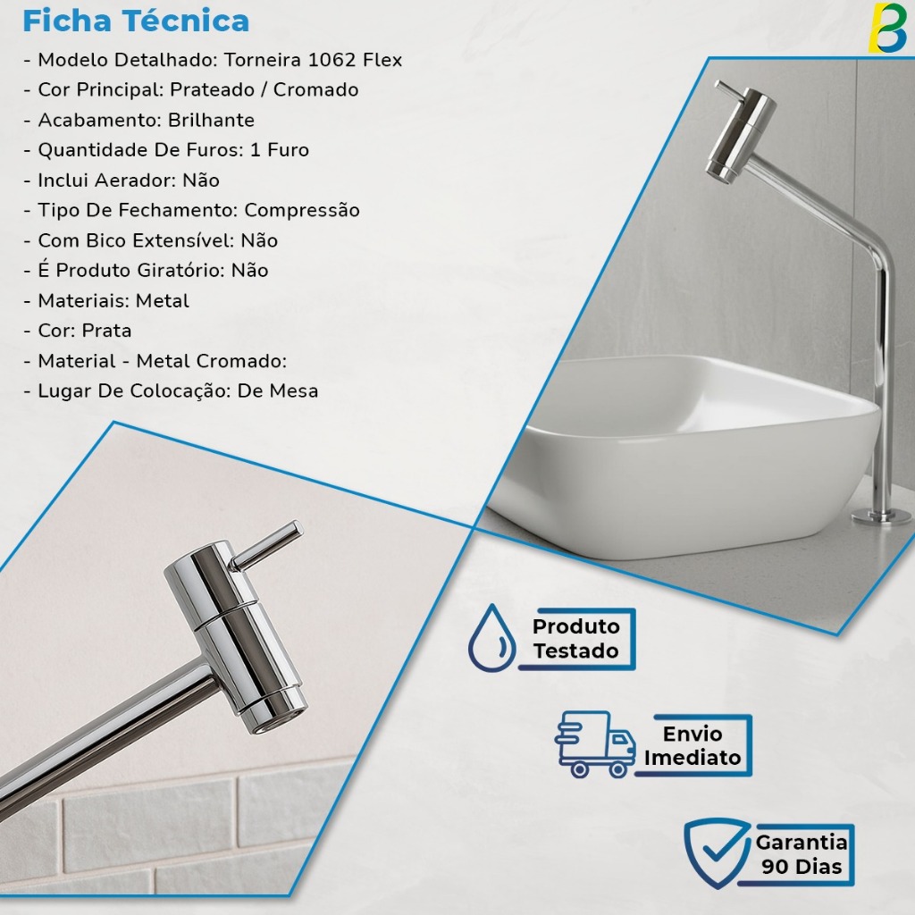 Torneira Lavatório Cuba Link Alta 45º 1/4 Volta Metal Cromada