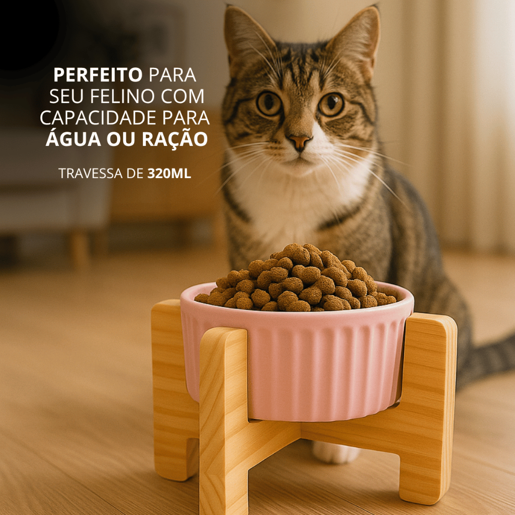 Comedouro Porcelana Gato e Cachorro Elevado Ergonomico Premium