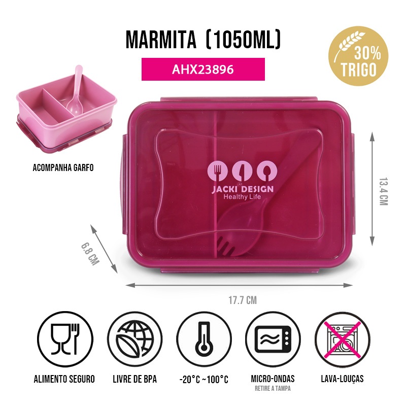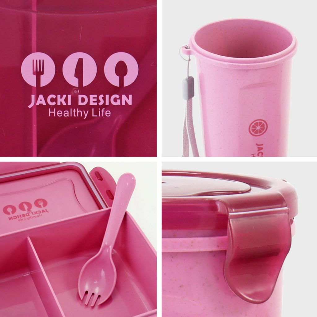 Kit de Bolsa Térmica c/ 2 Compartimentos, Pote Marmita e Garrafa, Porta Talher e Porta Escova- Jacki