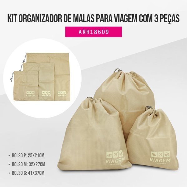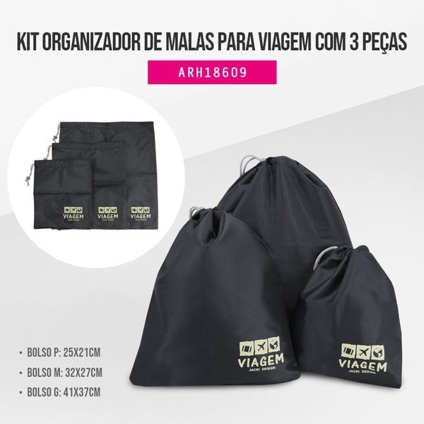 Kit Organizador de Malas para Viagem com 3 Peças Jacki Design