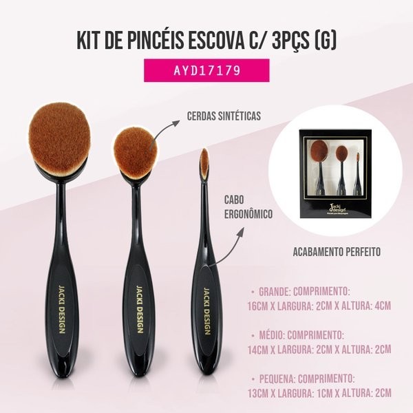 Kit de Pincéis Escova com 3 Peças Jacki Design Tamanho M